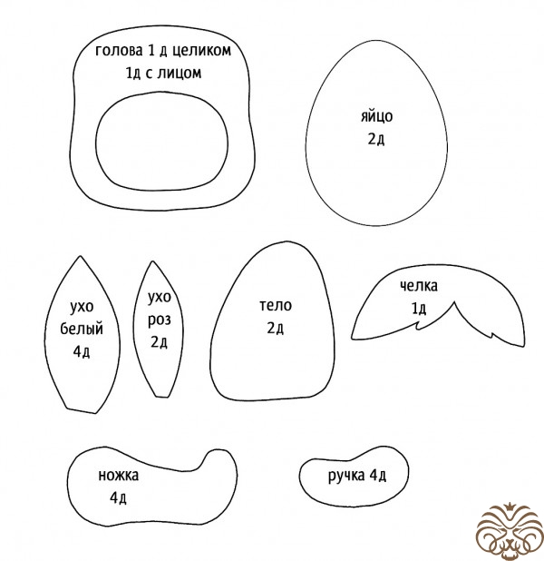 1. Фетр (полиэстеровый мягкий 1 мм): белый, бежевый, коричневый, розовый, салатовый, желтый