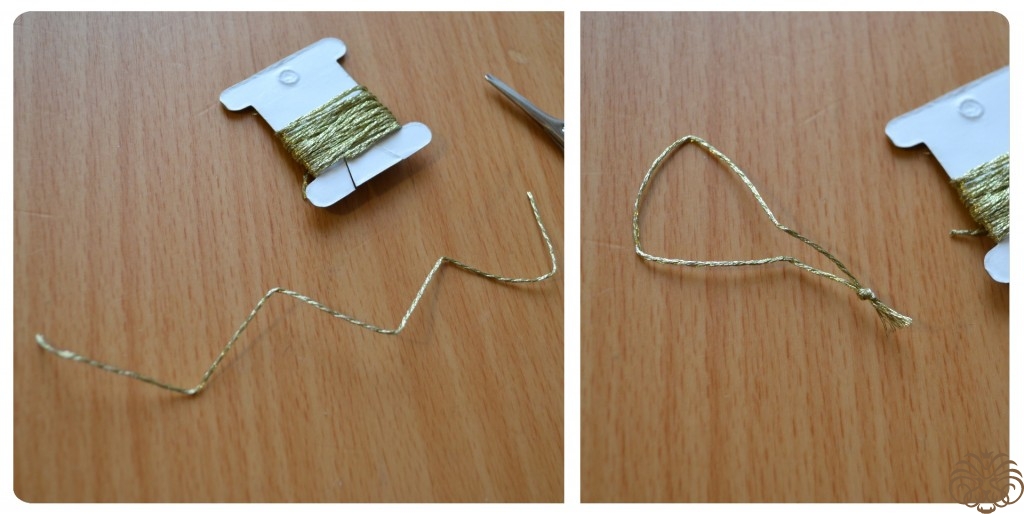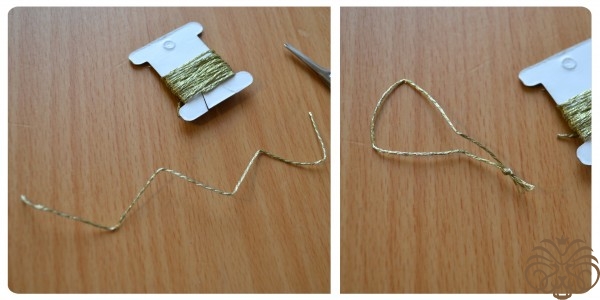 Пришиваем глазки. Для этого сзади головы выберете одну точку где-то по середине и введите нитку с иголкой. Выводим ее сначала в точке, где нарисован, например, правый глаз. Вдеваем на иголку бисеринку и пришиваем ее. При этом выводите и вводите иголку сзади всегда в одной точке сзади. Затем так же пришиваем и второй глаз