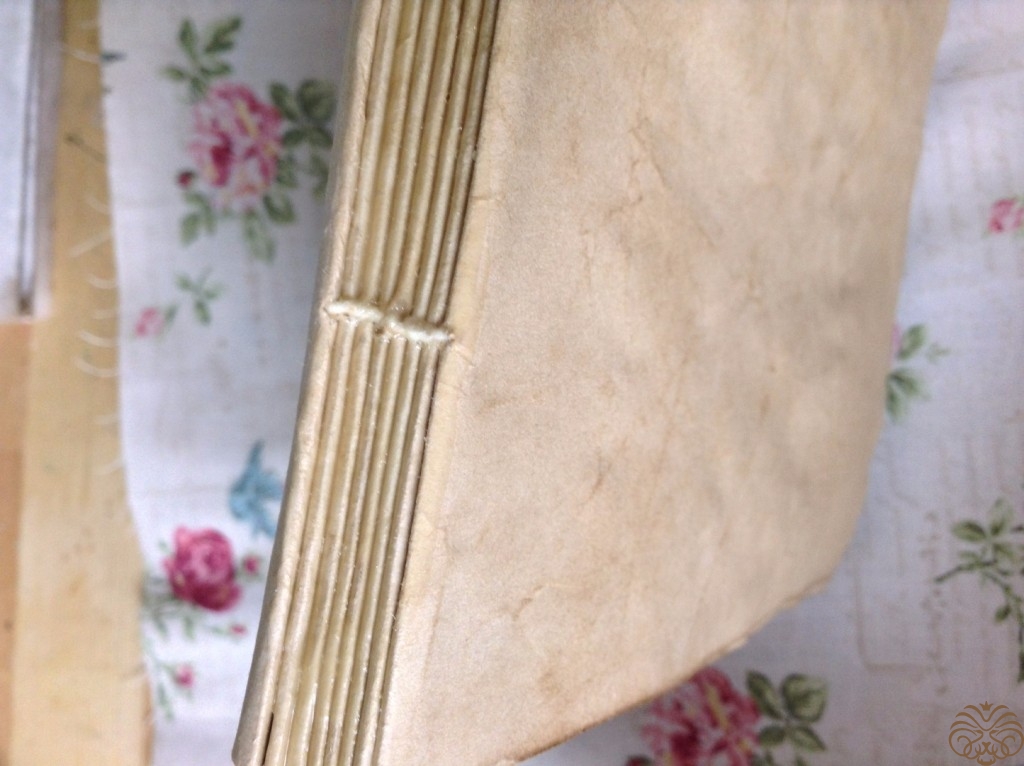 У меня уже был готовый блок состаренных в кофе страничек и заготовка обложки. Переплет я в свое время делала коптский,а вы в свою очередь можете выбрать любой,который вам удобно будет сделать. Заготовку я обтянула синтепоном и выбрала очень красивую ткань для обложки. (за ткань отдельное спасибо этому замечательному порталу Рукоделион)))