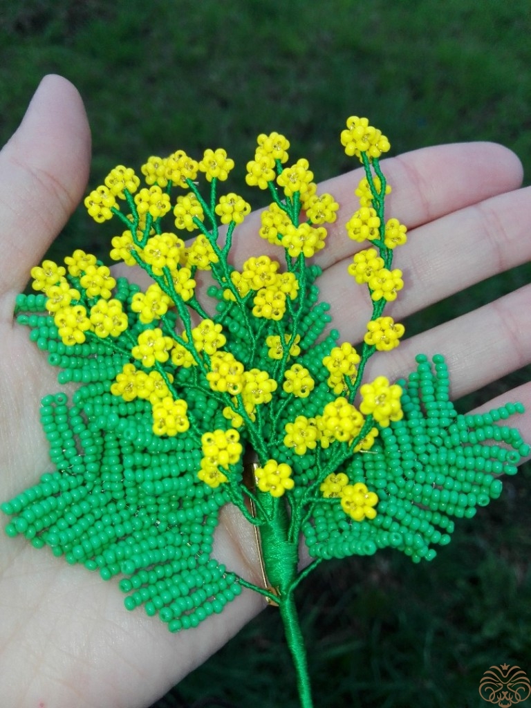 Весна - прекрасное время года, первый праздник весны - 8 Марта и его символ - мимоза. Сегодня мы создадим брошку в виде веточки мимозы.
