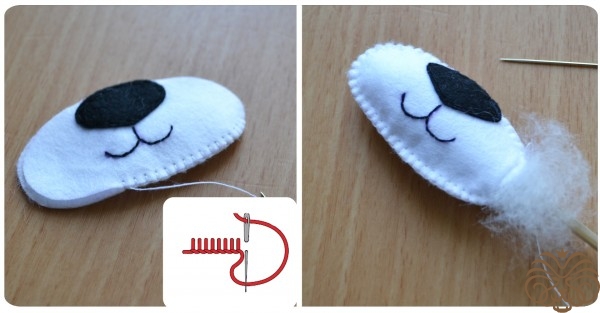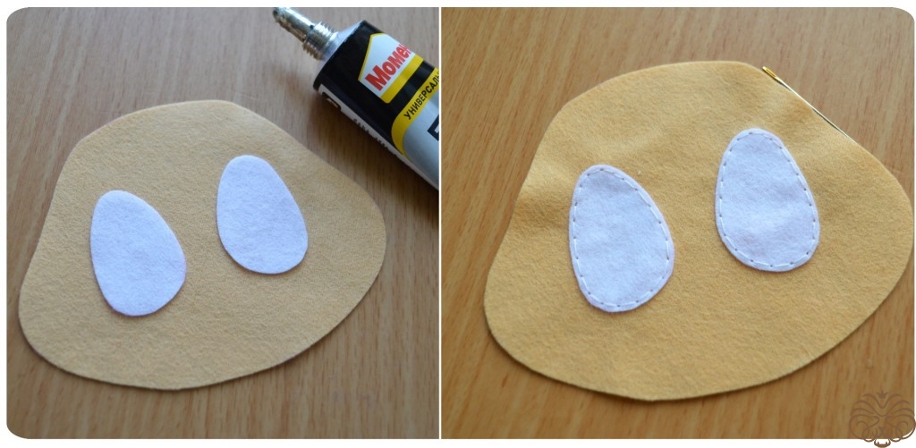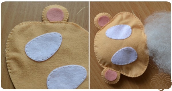 p.s. У следующей кошки я не приклеивала эти розовые детали ушек, а пришивала. По фото вы можете выбрать какой вариант вам больше нравится. Если вы захотите их все-таки пришить, то нужно сделать это на этапе, когда детали ушек еще только вырезаны. Т.е. пришиваете розовые участки ушек к верхним деталям ушей, а затем уже сшиваете обметочным швом сами уши