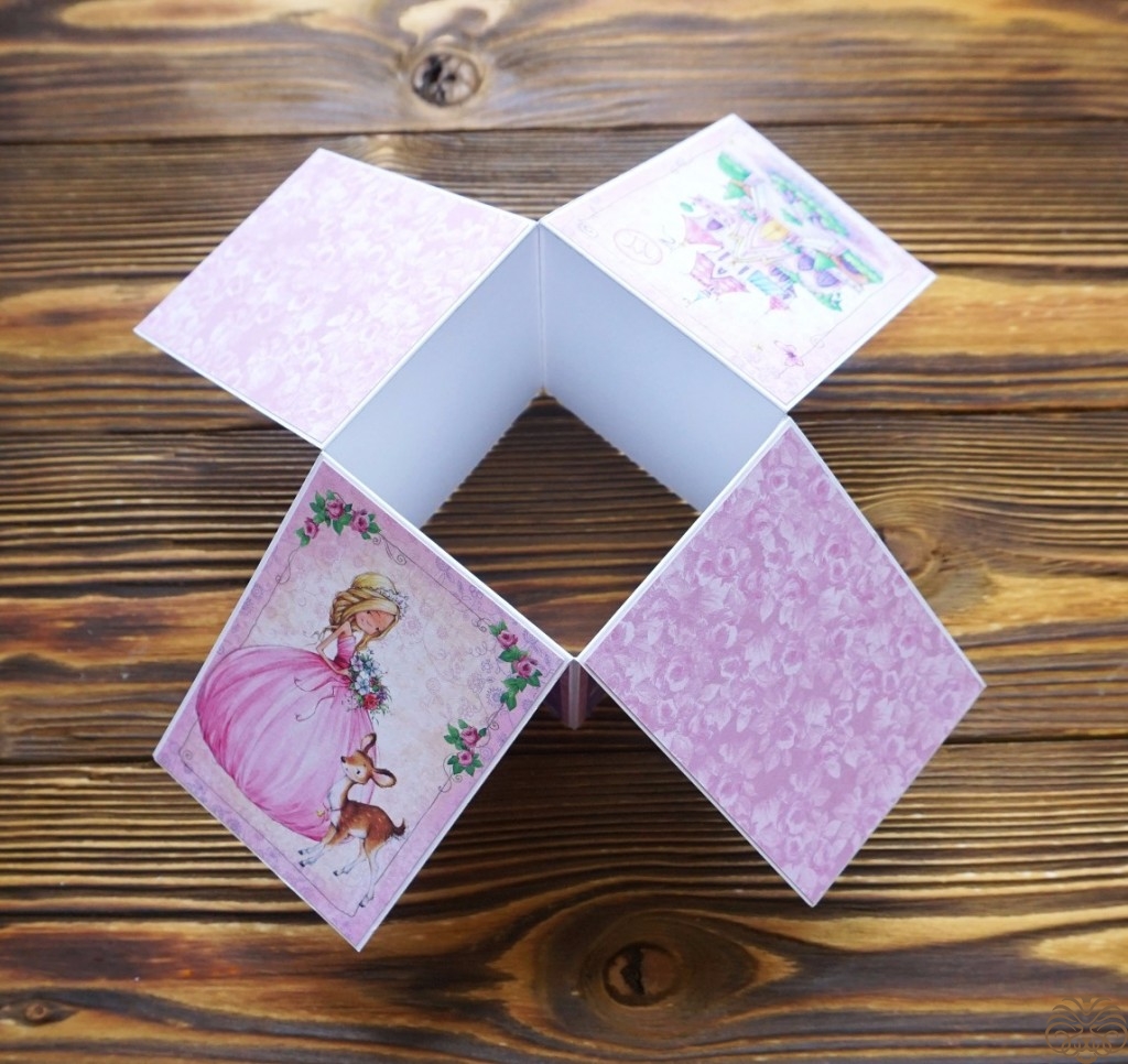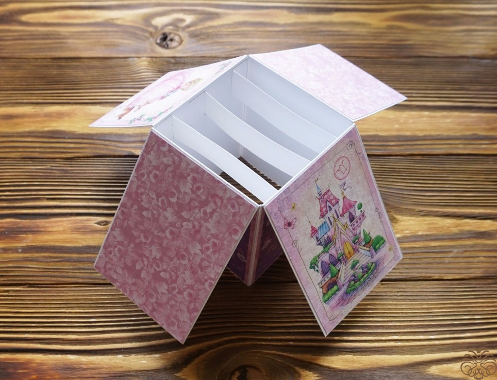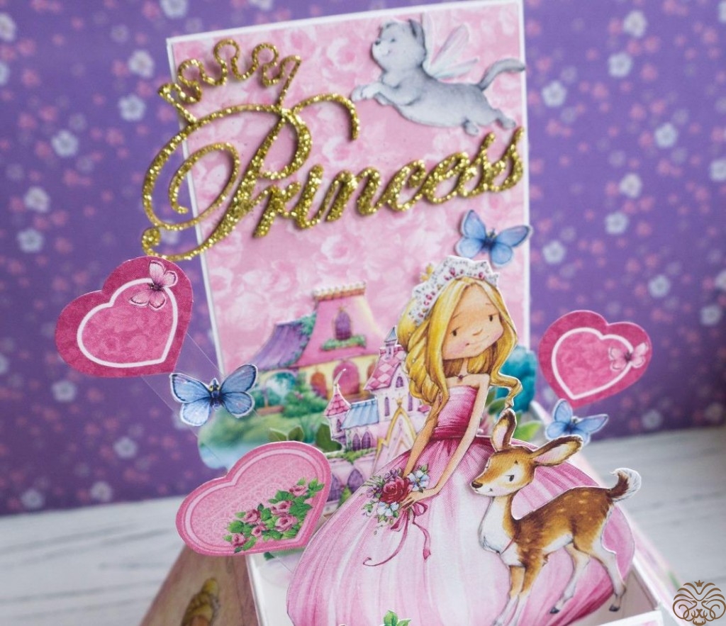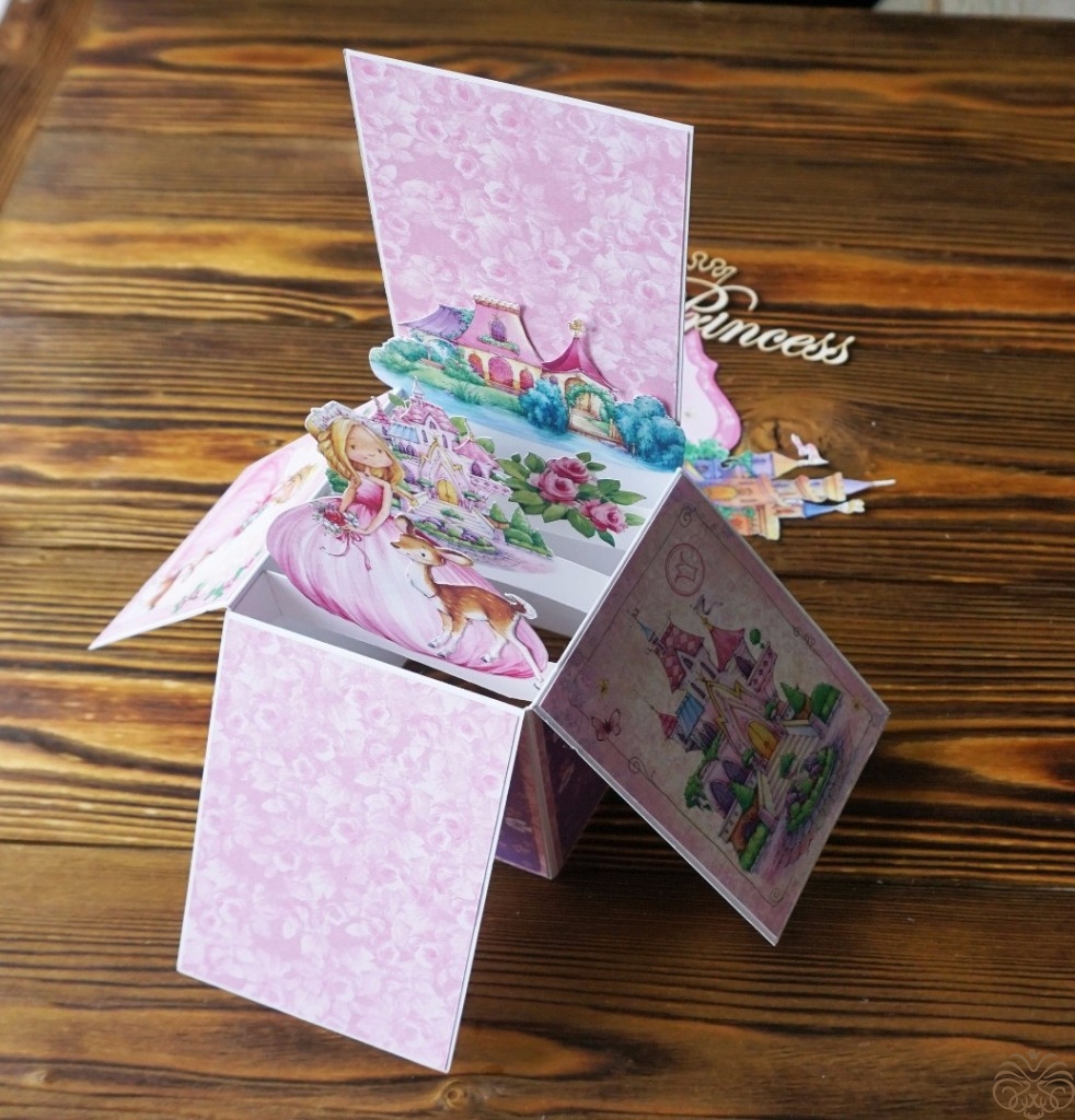 В наборе бумаги были очень красивые карточки с принцессой и замком, поэтому в размерах окошечек я отталкивалась от размеров карточек.
