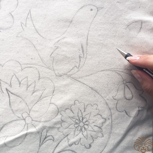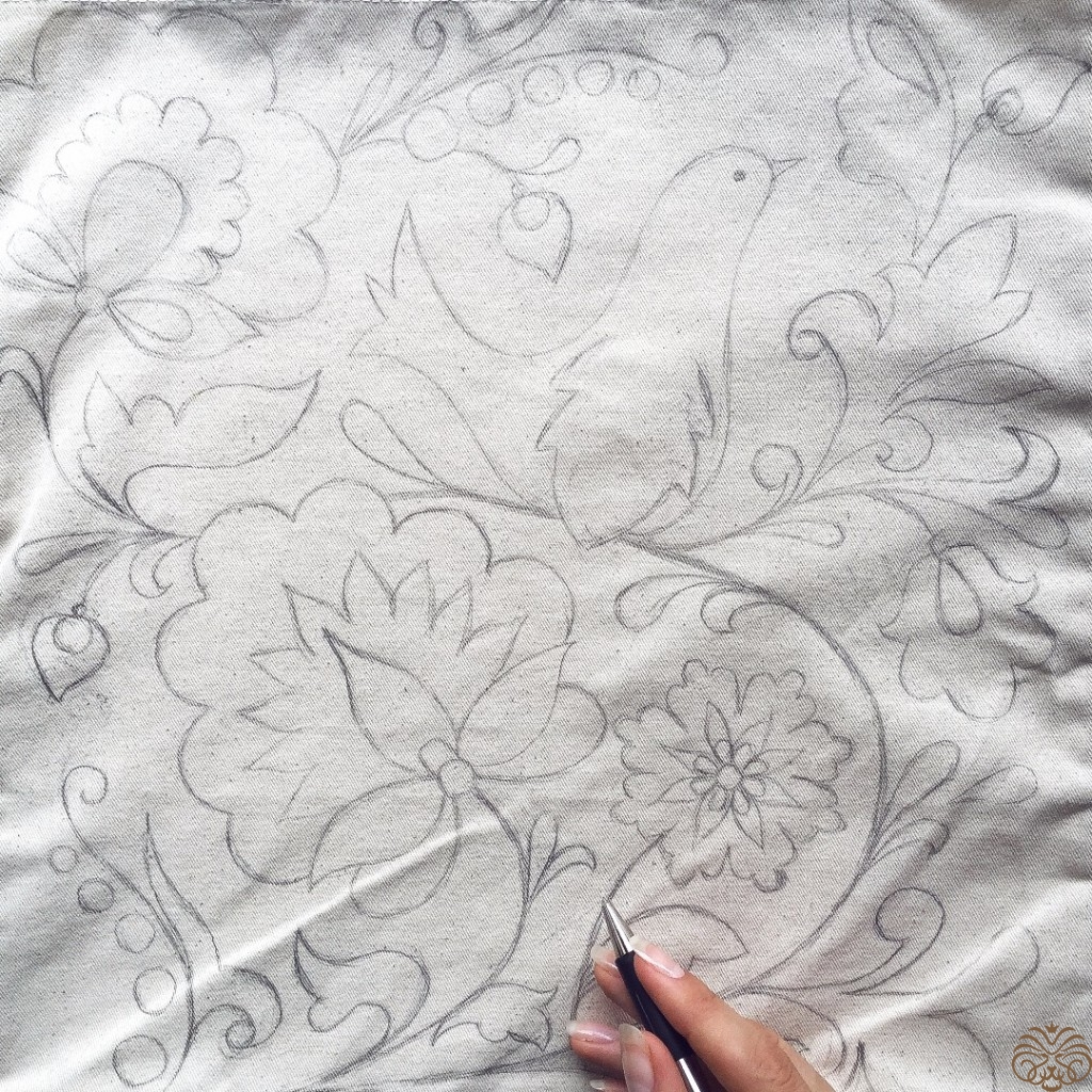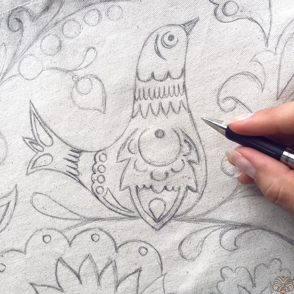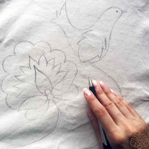1. Найти центр сумки (мы не будем располагать, например птицу в самой середине, потому как у нас принт, а не птичка на веточке. Понимаете о чем я? Внимание не должна привлекать только она - узор должен смотреться целостно, а значит, центр остается для ориентира)