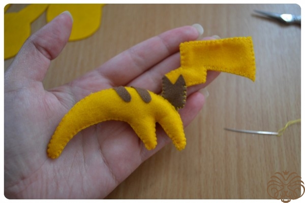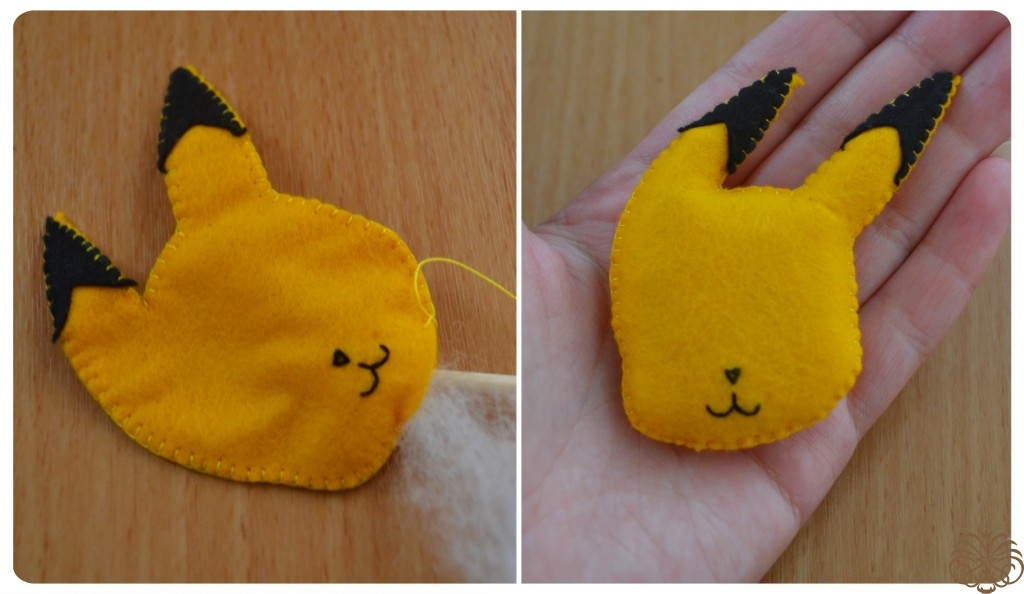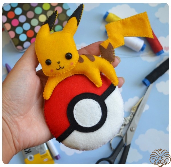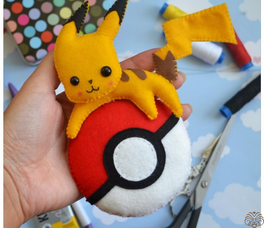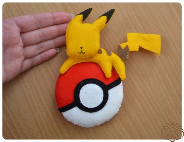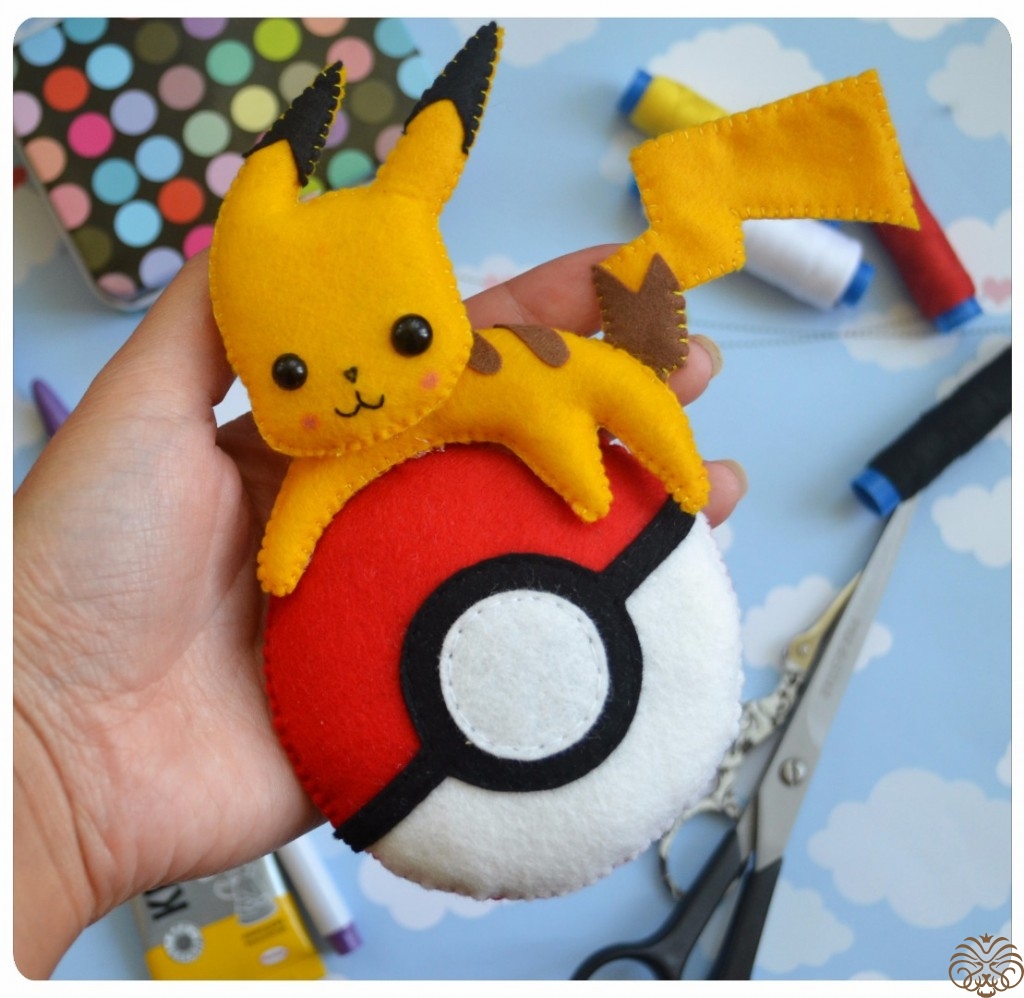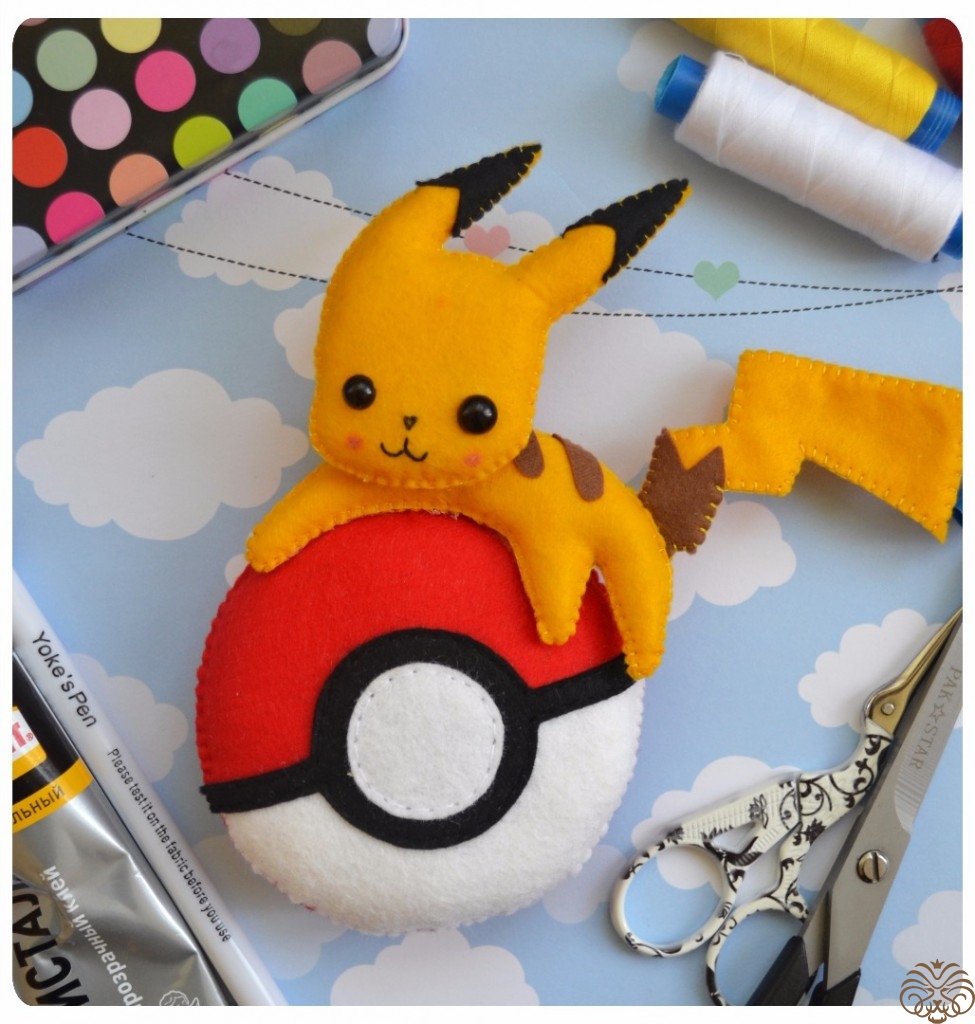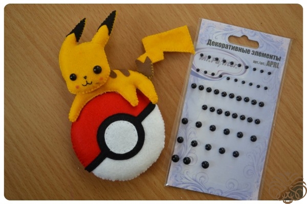 И вот наш Покемончик готов! Приклейте к нему магнитик и украсьте им свой холодильник. Или вставьте шнурочек с карабинчиком, и у вас получится брелок или подвеска в машину. А можем пришить крепление для брошки и прицепить такую брошку к рюкзаку школьника.