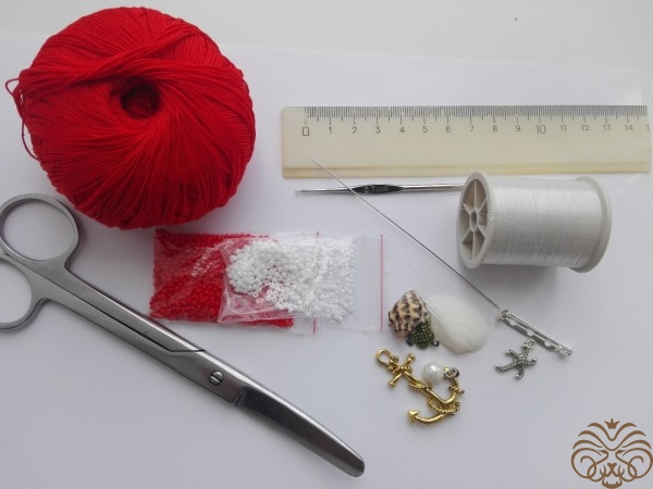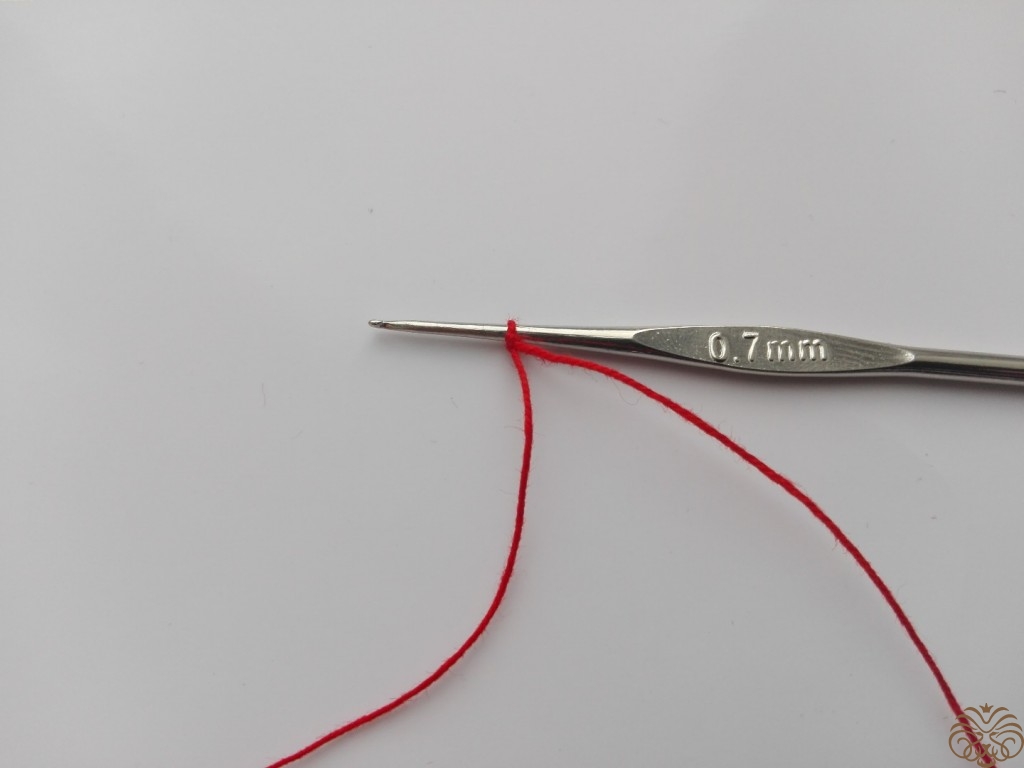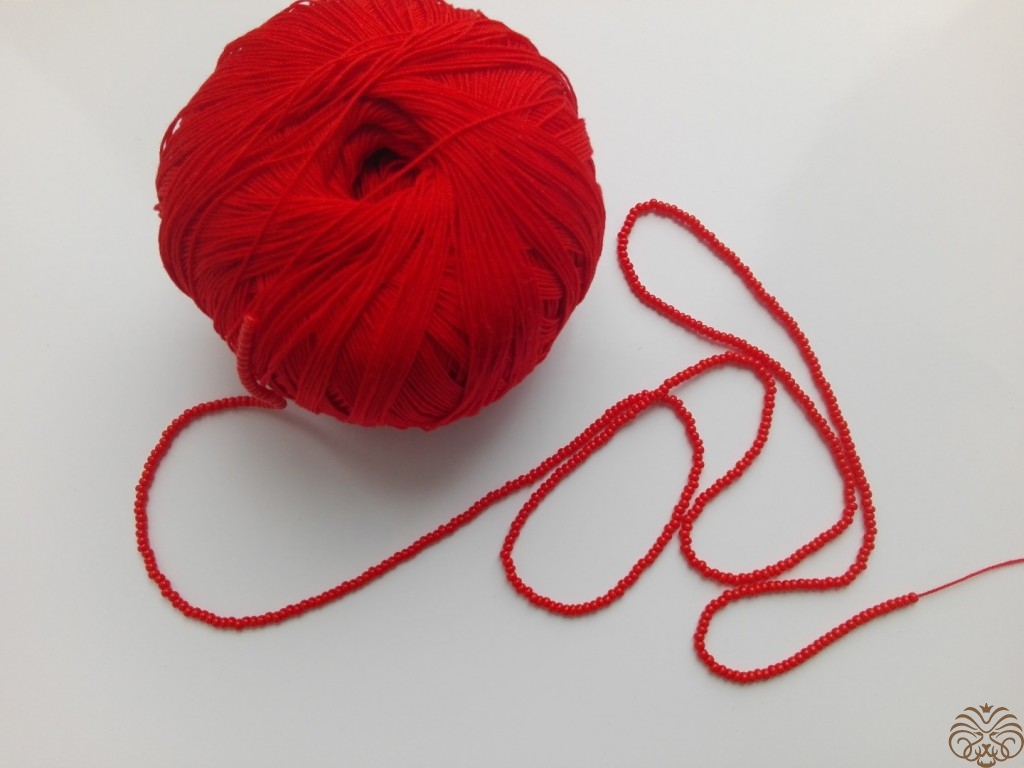- тонкая нить для вязания (я использовала Пехотку цветное кружево красного цвета);