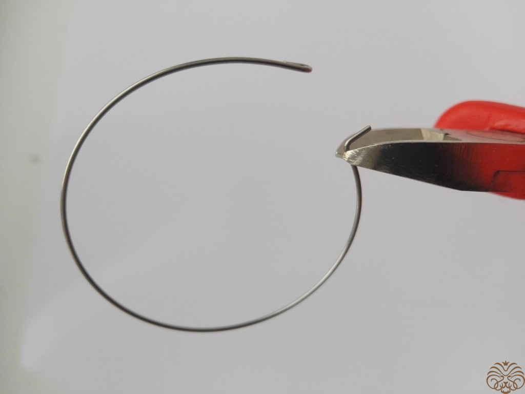 2. Для поддержания более жесткой формы кольца вовнутрь жгута можно вставить виток мемори-проволоки для сережек или круглую швензу, откусив лишний кончик и сильнее зажав другой.