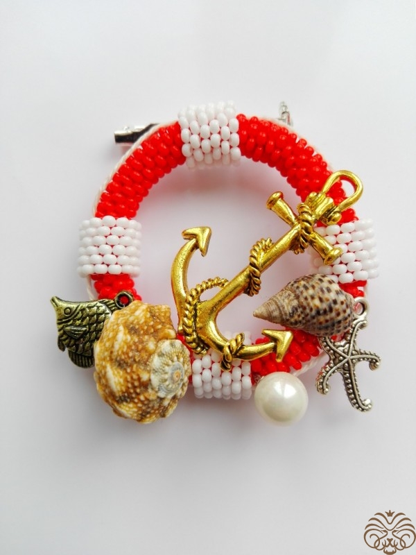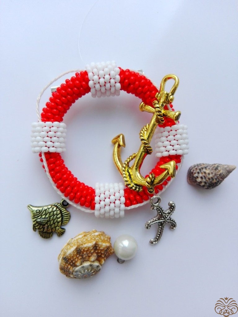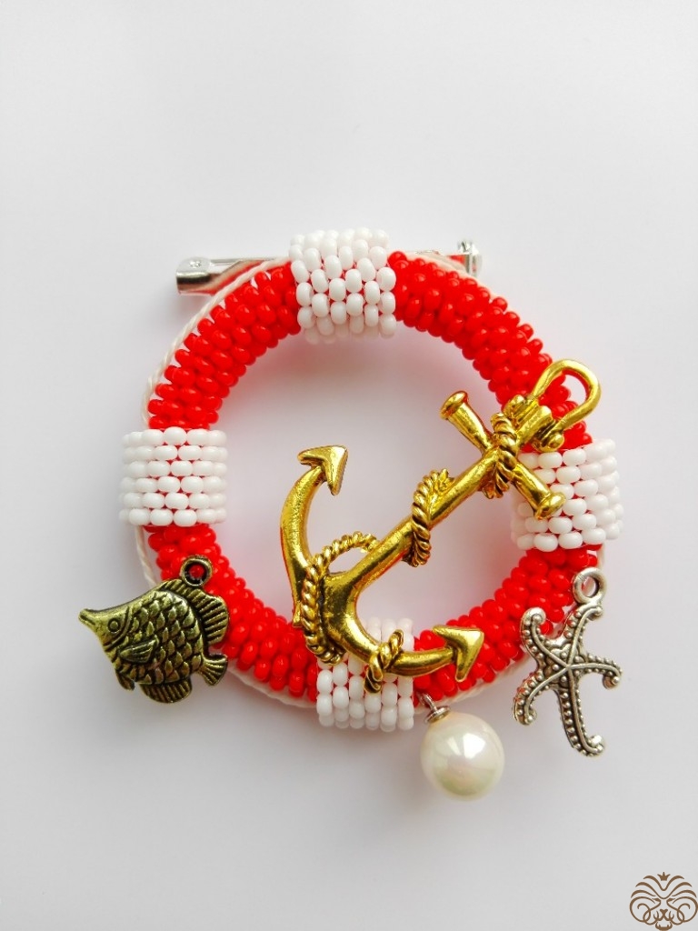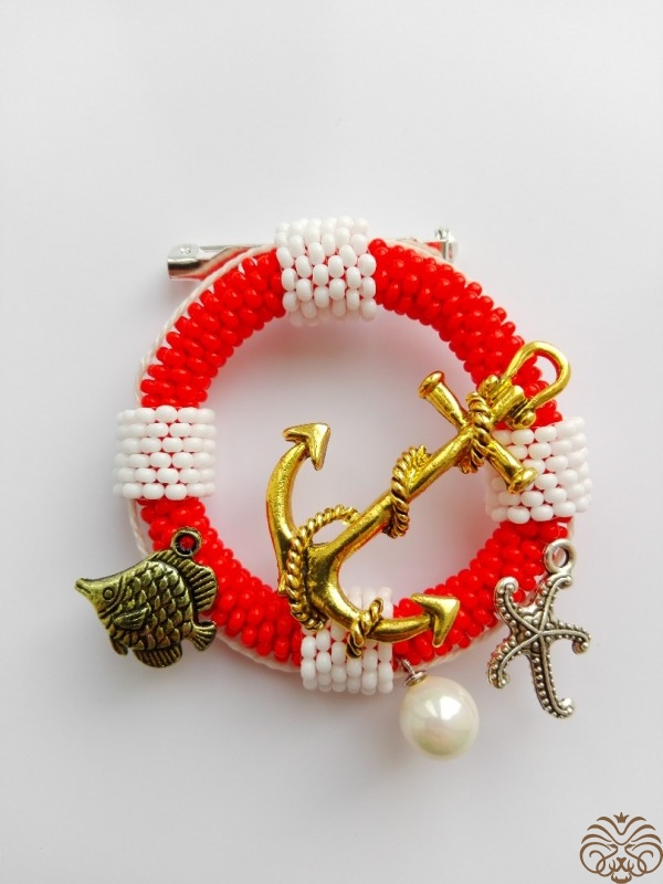 Здравствуйте. Сегодня мы будем выполнять оригинальную брошь в виде спасательного круга с элементами морского декора.