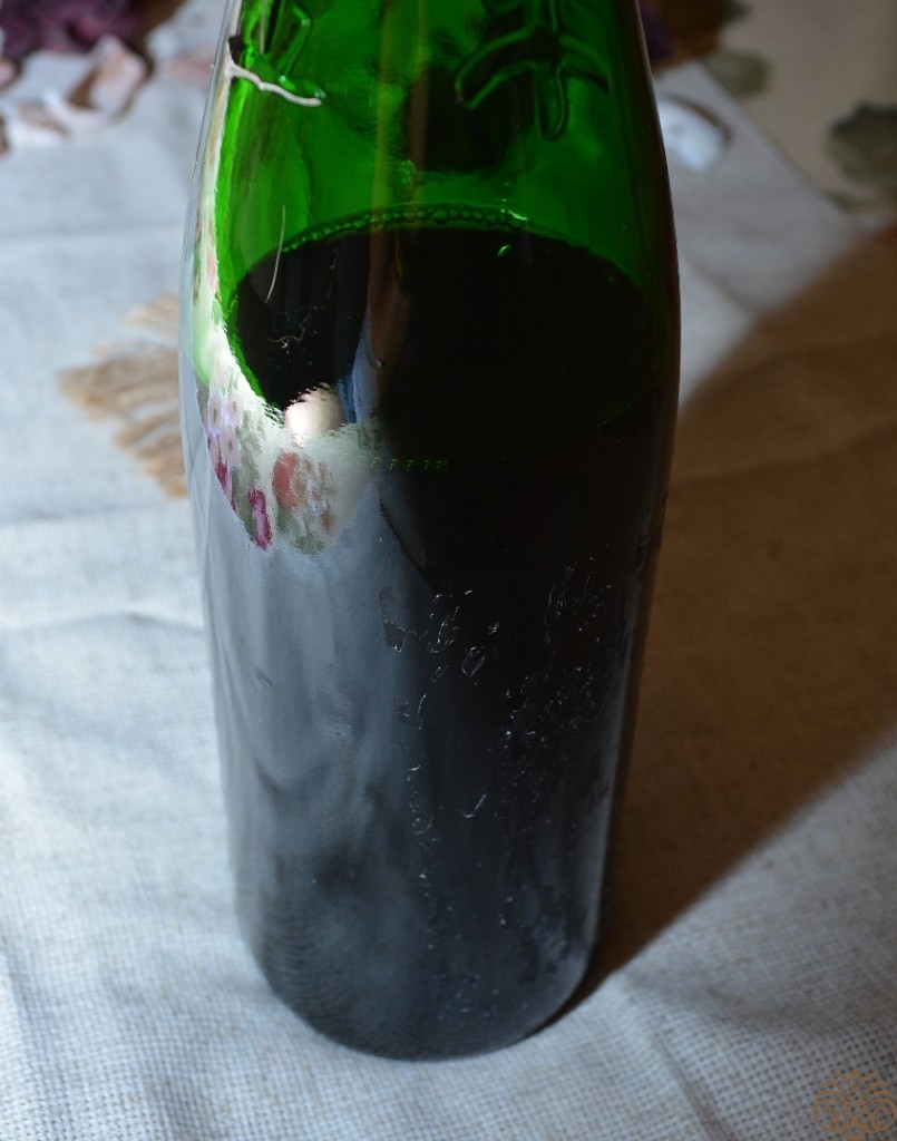 Первым делом нужно очистить бутылку от этикеток. Я это делала с помощью воды и губки для мытья посуды, намочив этикетку-она легко отходит от стекла.Не страшно, если останутся мелкие бумажные элементы.