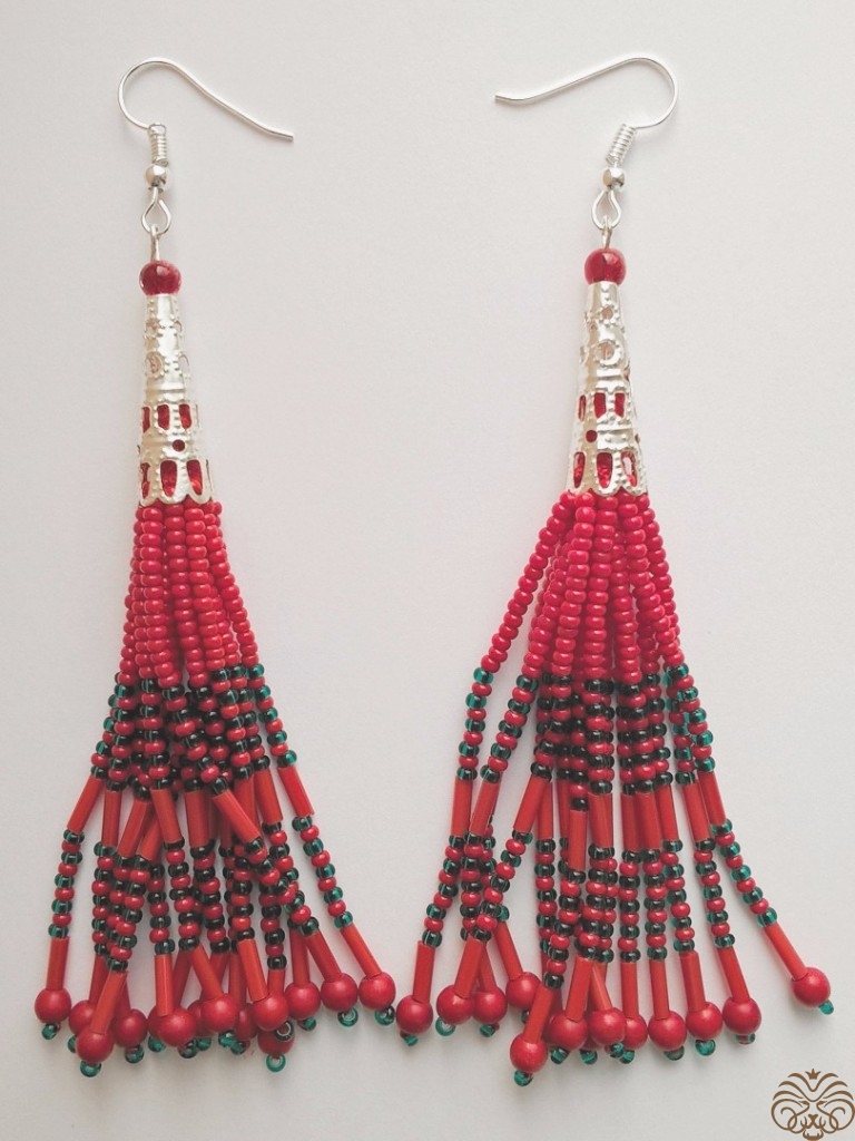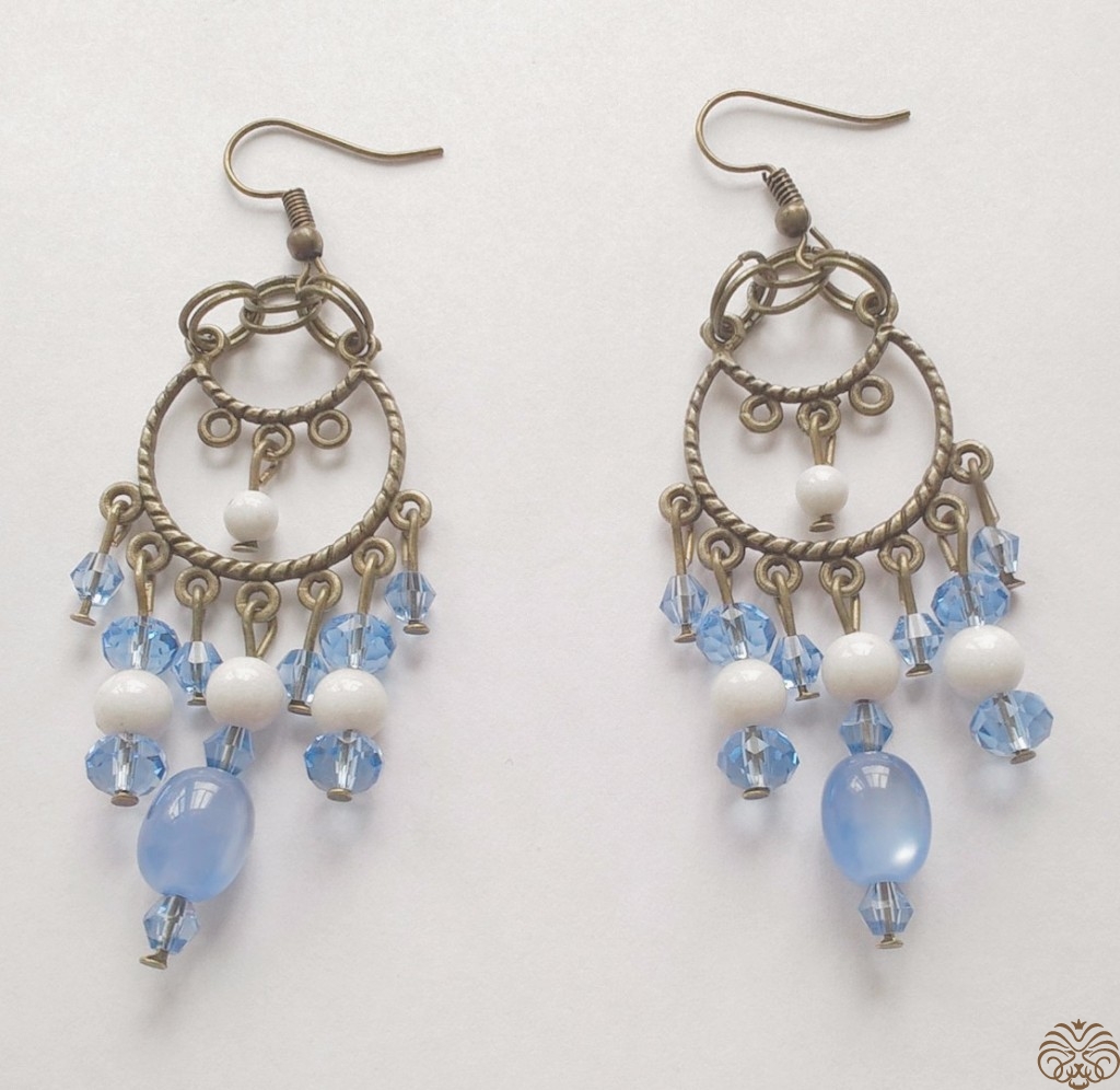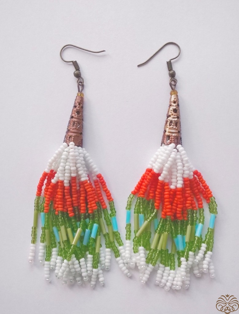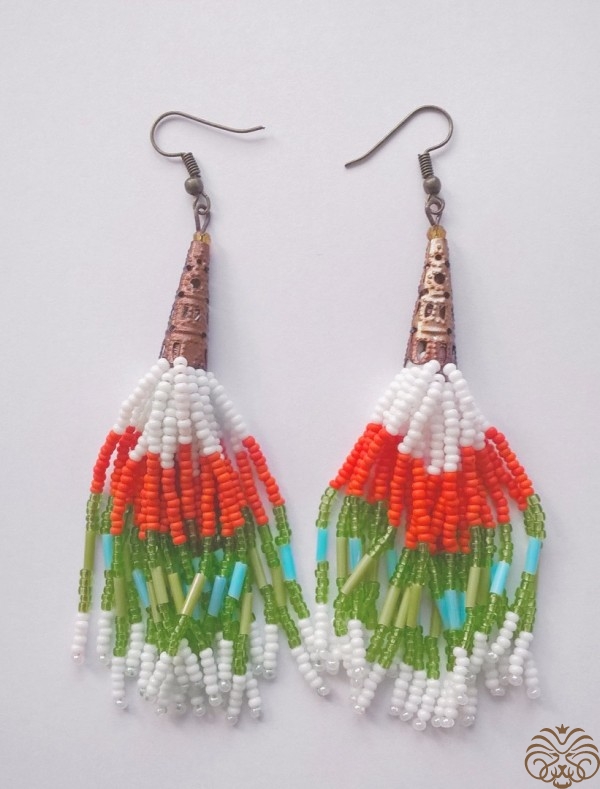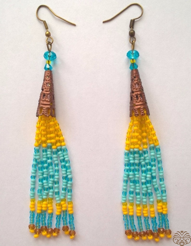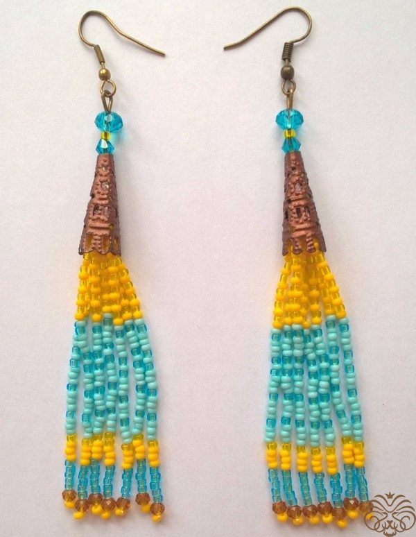 Яркие летние серьги. Бисер, натуральные камни, фурнитура.