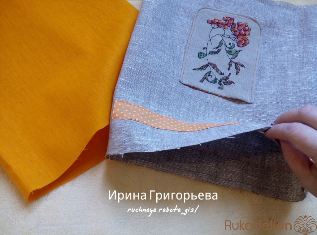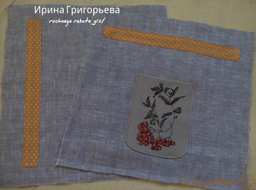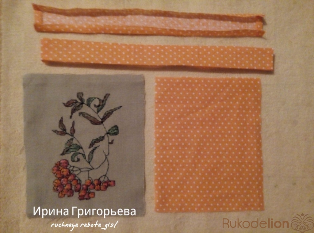 - детали для кармана 11/14см (вышитый сюжет и оранжевая в горох);