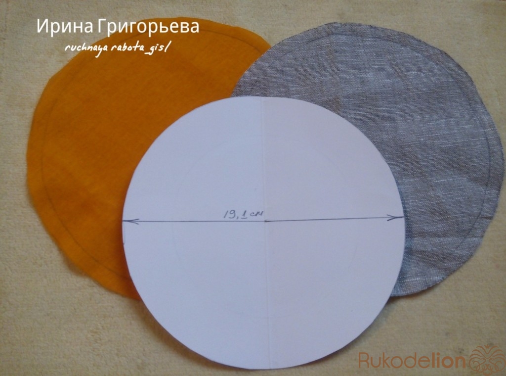 - добавим по 1см с каждой стороны, получим диаметр донышка с припуском на швы