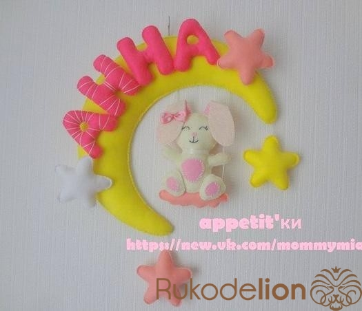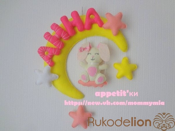 Именное панно Зайка на луне можно повесить над кроваткой малыша или на дверь детско. Оно станет отличным подарком на день рождения и просто так)