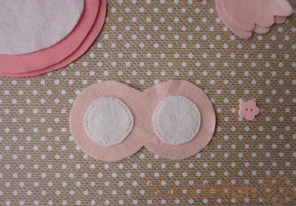 Шьем крылышки. К телу их можно пришить или приклеить пи помощи клеевого пистолета. Я люблю мелкие детали, поэтому добавляю на крылышки по полужемчужинке и бантик.
