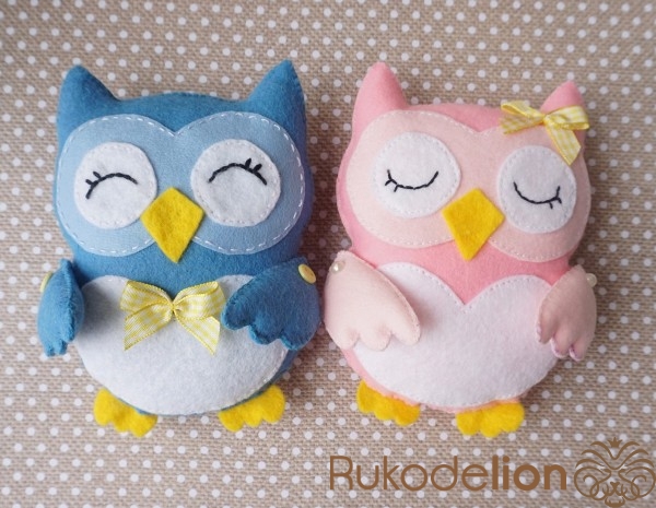 Для того, чтобы совушек можно было повесить на стену или кроватку малыша, протягиваем веревочку.