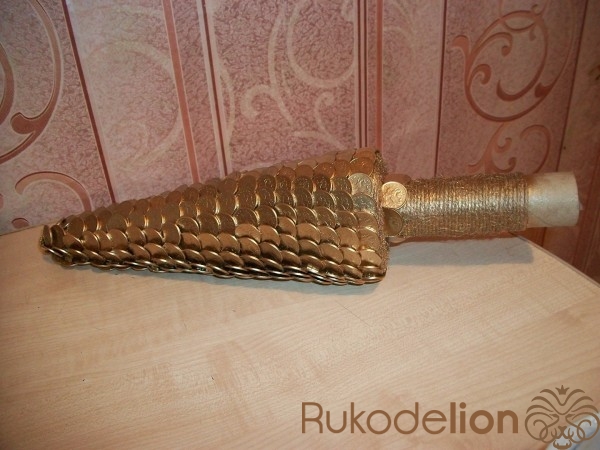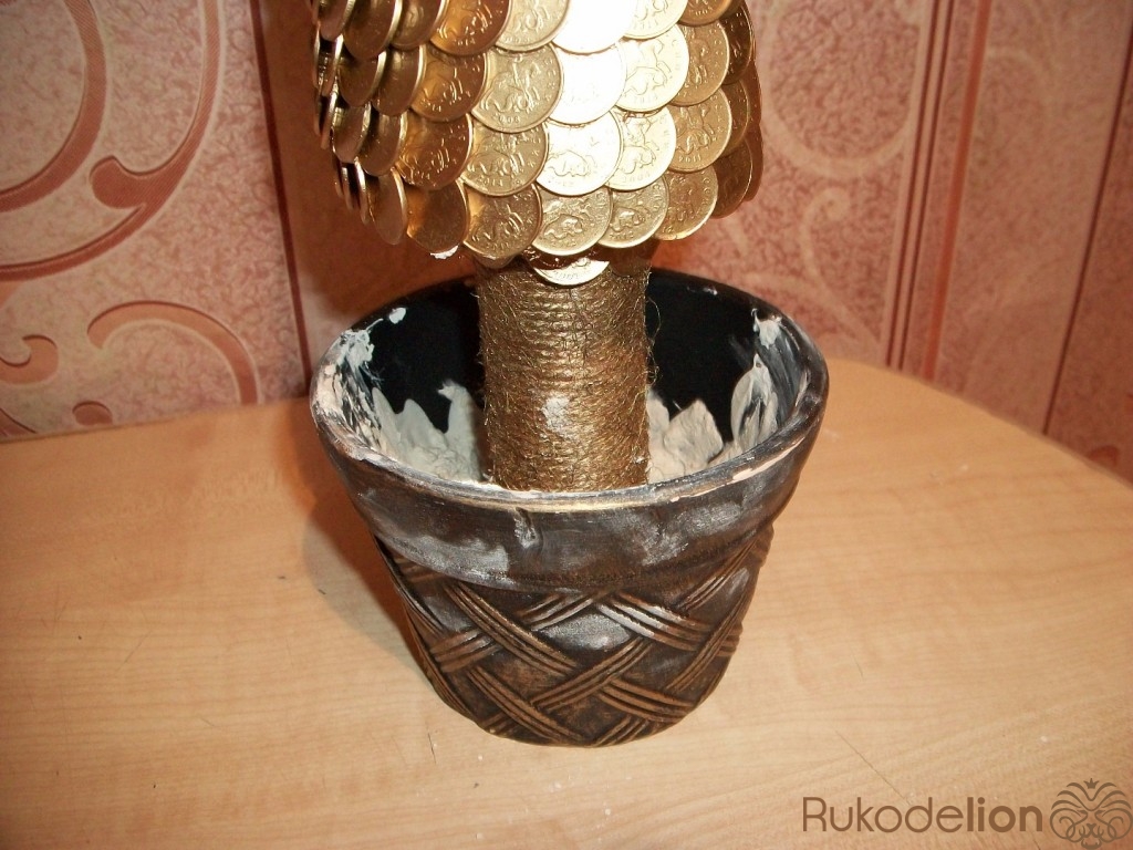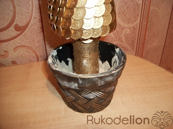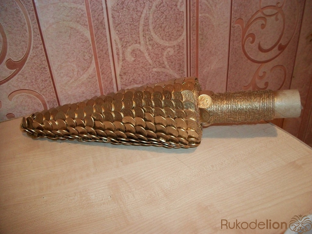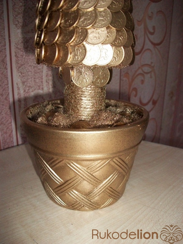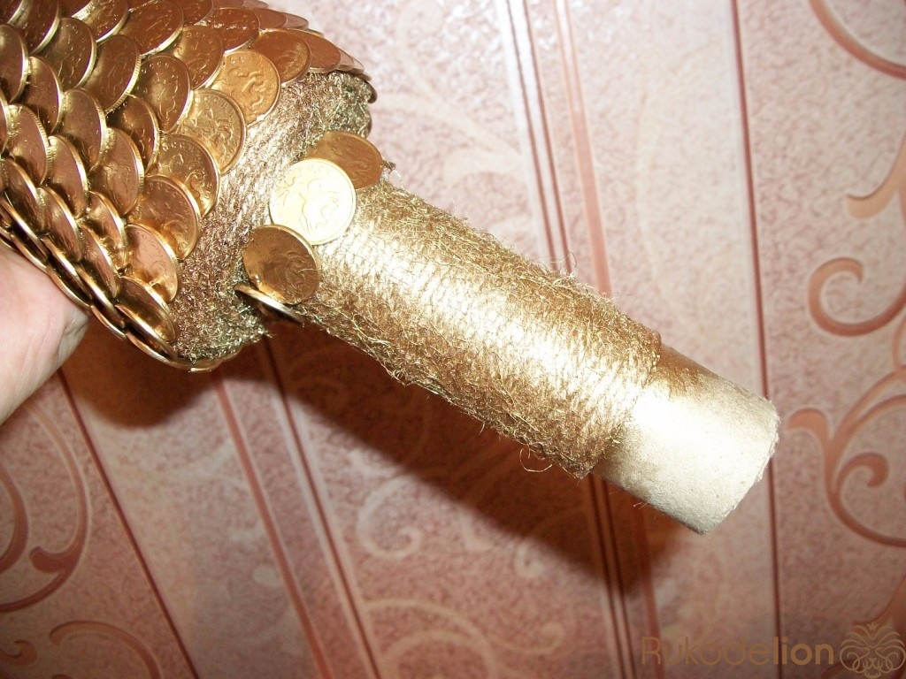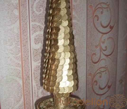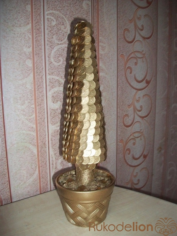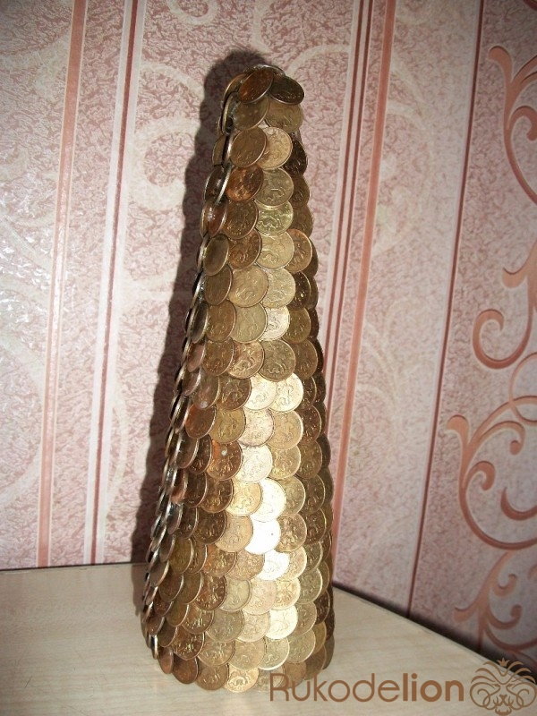 Новогодняя елочка из монет в золотом цвете