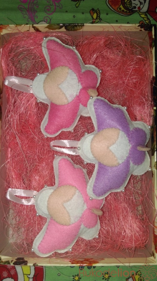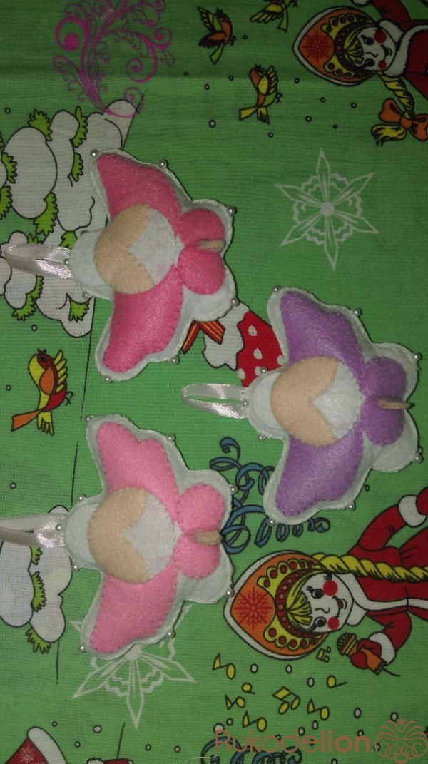 Ангелочки выполнены из мягкого фетра. Станут приятным подарком на Новый Год и Рождество.