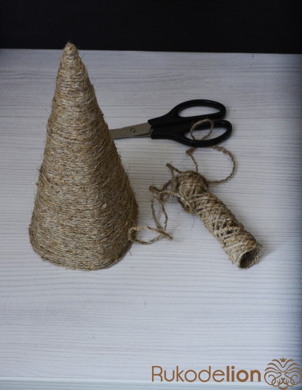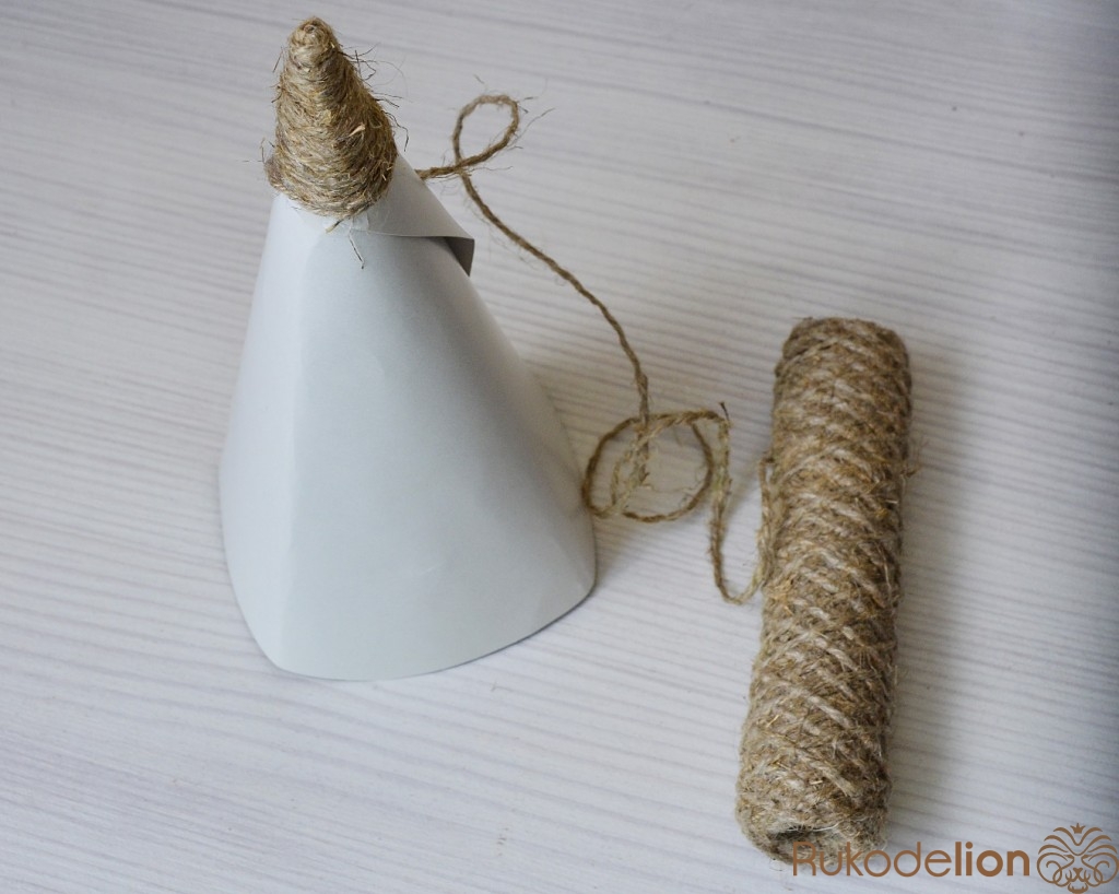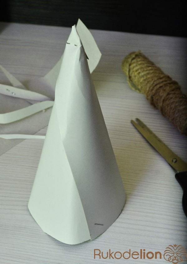 Из картона мы делаем конус, можно закрепить края клеем или степлером.