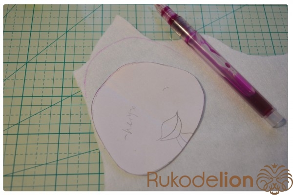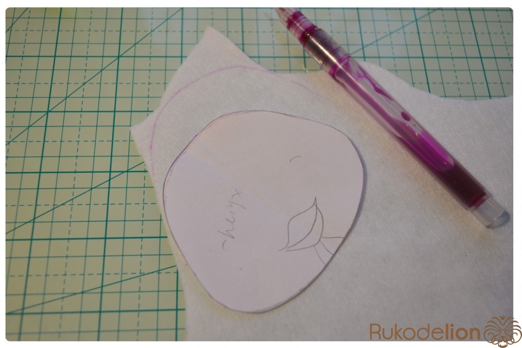 Сначала нам нужно вырезать все детали из фетра. Для этого мы обводим детали выкройки на фетре самоисчезающим маркером. Затем вырезаем