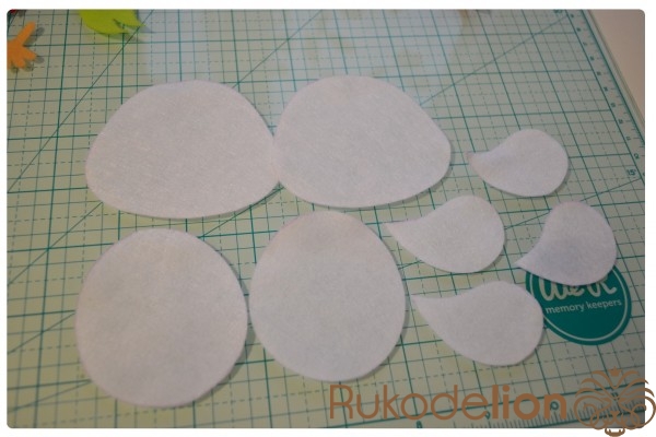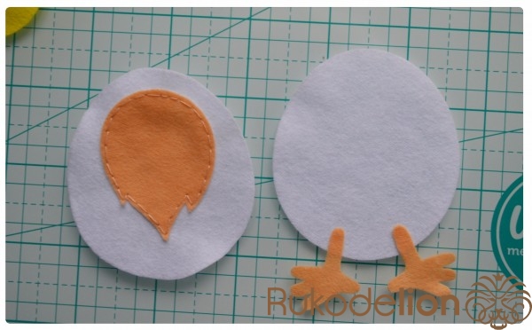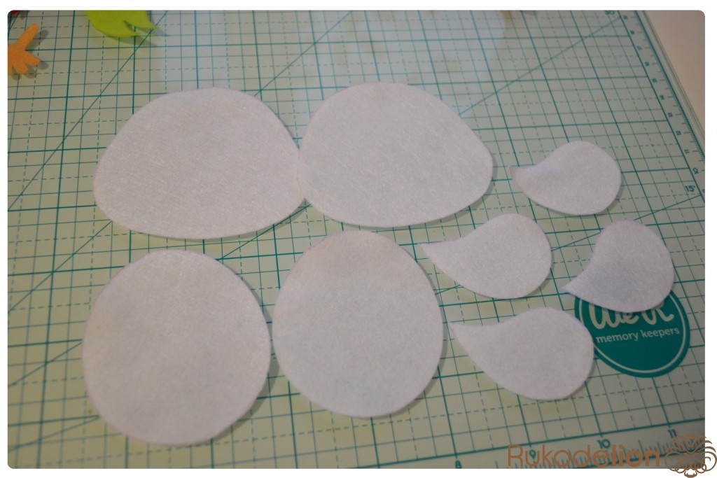 Так из белого фетра мы вырезаем 2 детали головы, 2 детали тела, 4 детали крыльев