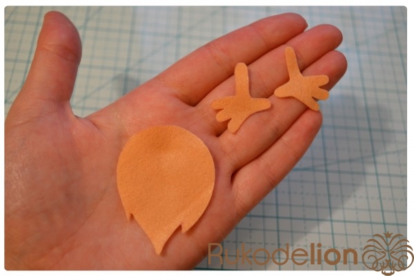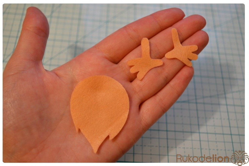 Из бежевого фетра вырезаем одну деталь грудки и две детали лапок. Кстати, лапки в данном случае, можно вырезать не из мягкого, а из жесткого бежевого фетра