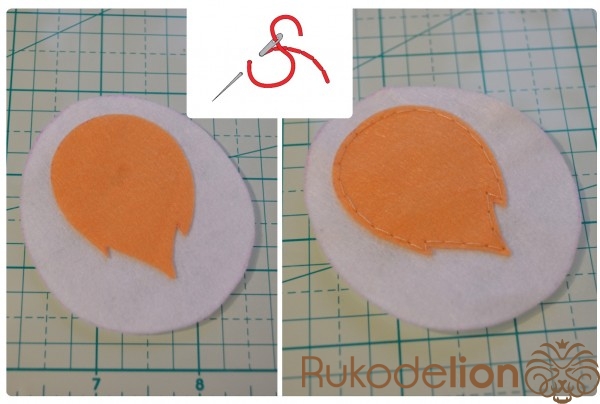Берем две детали клюва и сшиваем их по внешним краям мелкими стежками обметочным швом. Заканчиваем шов, но нить не обрезаем