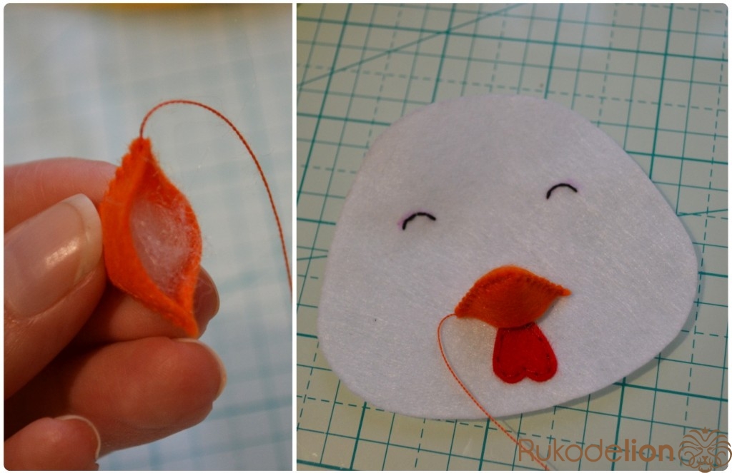 p.s. В одном из моих прошлых мастер классов, мы уже пришивали такой клюв. Смотри более подробно тут https://rukodelion.com/1298-pingvinenok-iz-fetra