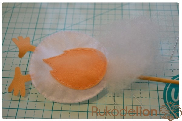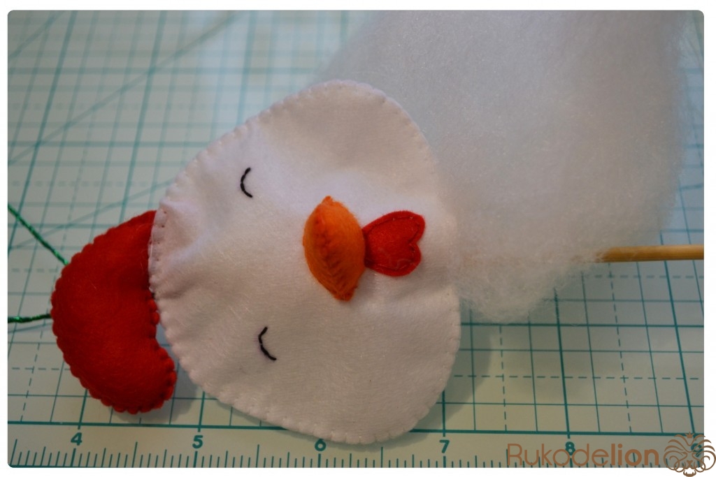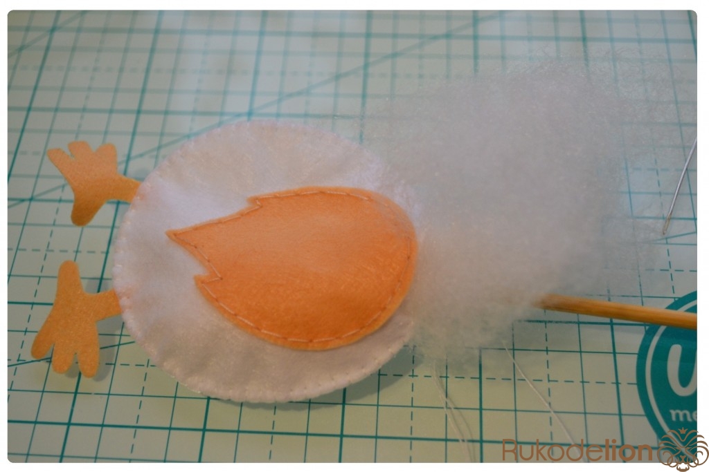 ...мы оставляем небольшое отверстие и через него набиваем клюв синтепоном уже полностью. Заканчиваем шов. Наш клюв пришит!