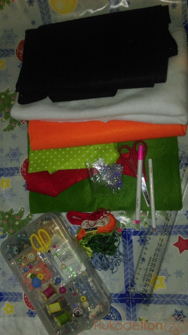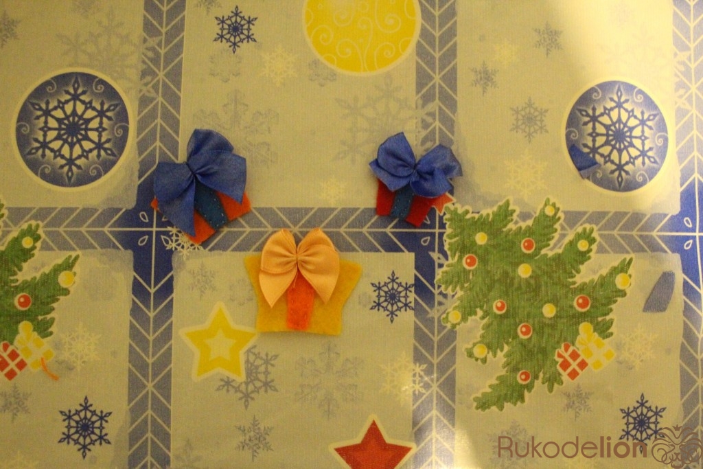 Из красного, жёлтого и оранжевого фетра, вырезаем подарки