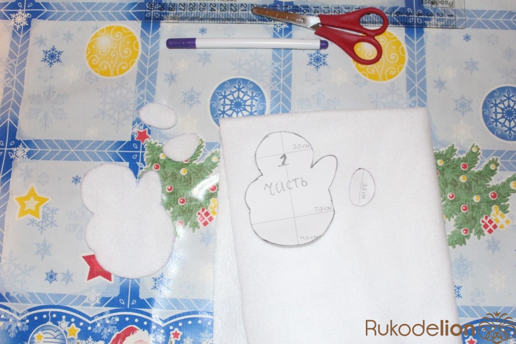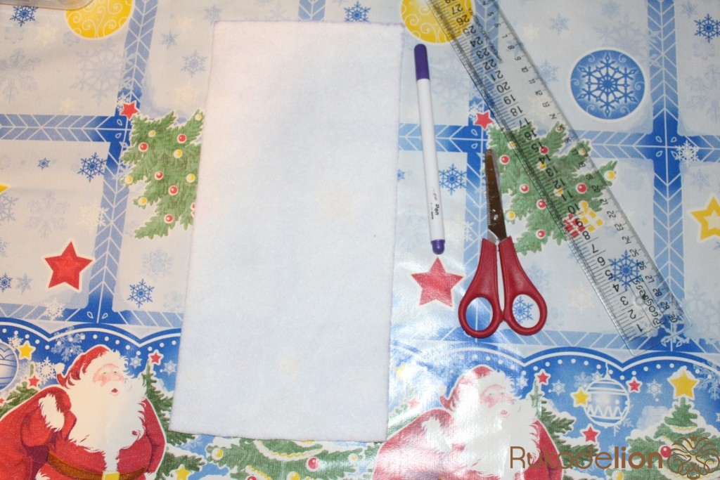 Вырезаем полоску из белого флиса , будет пришита в верху чехла. Ширину и сугробы делаете на своё усмотрение.