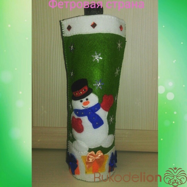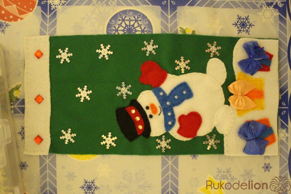 Пришиваем подарочки на нижнюю часть, под снеговиком