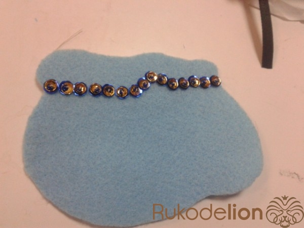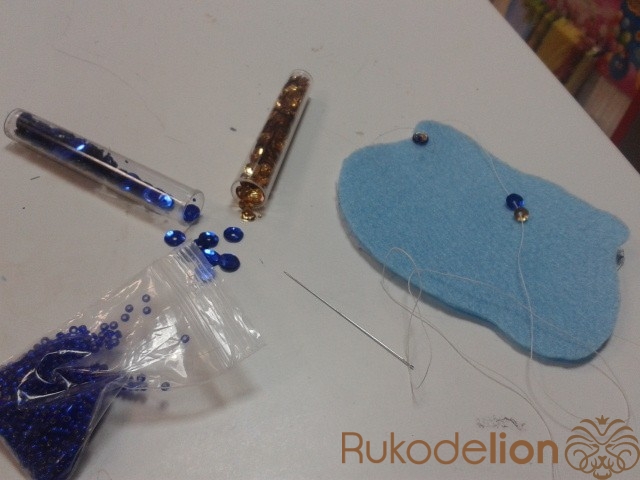 Пришиваем варежку , набиваем и украшаем её бисером и пайетками.