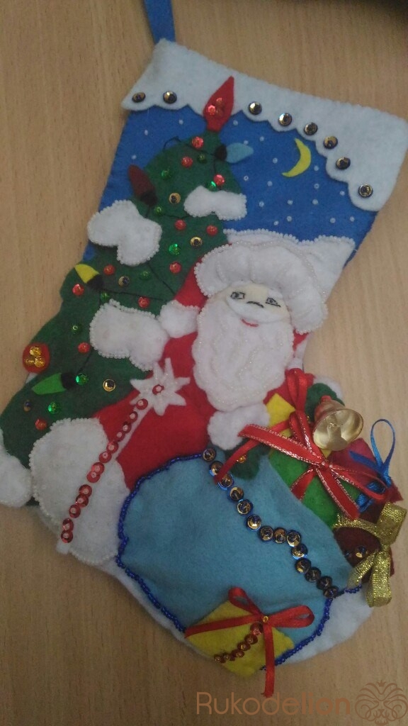 Пришиваем к сапожку заднюю часть и петельку из синего фетра.  Всё наш сапожок готов !!!!!