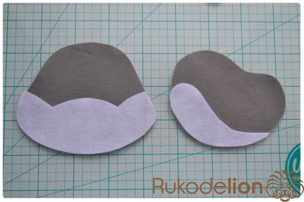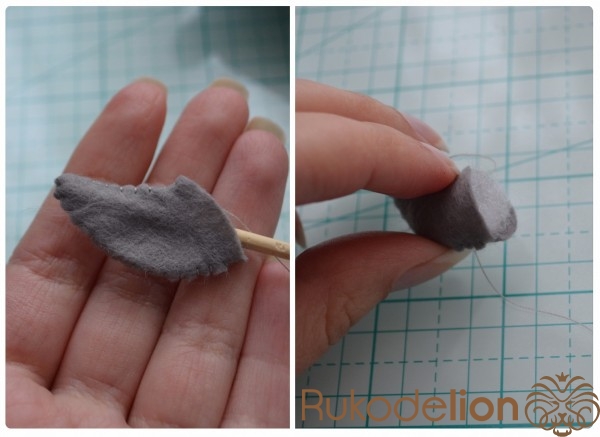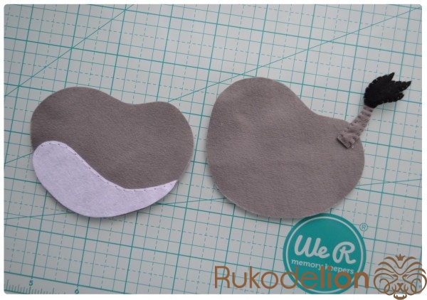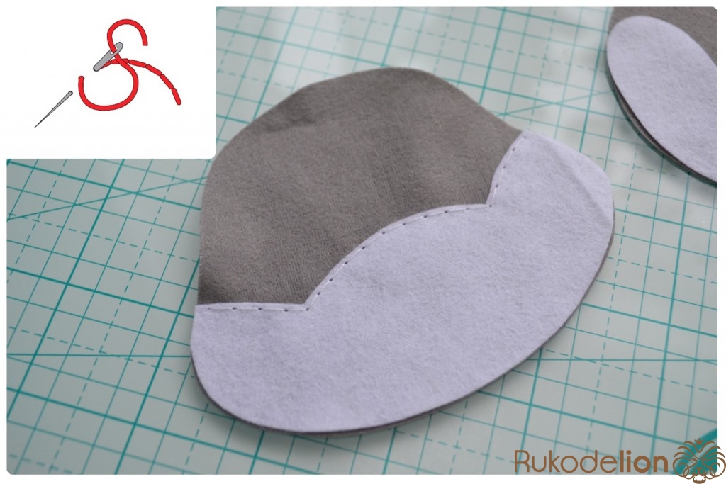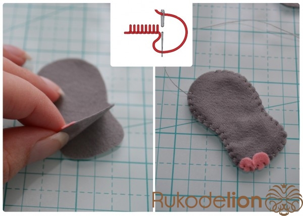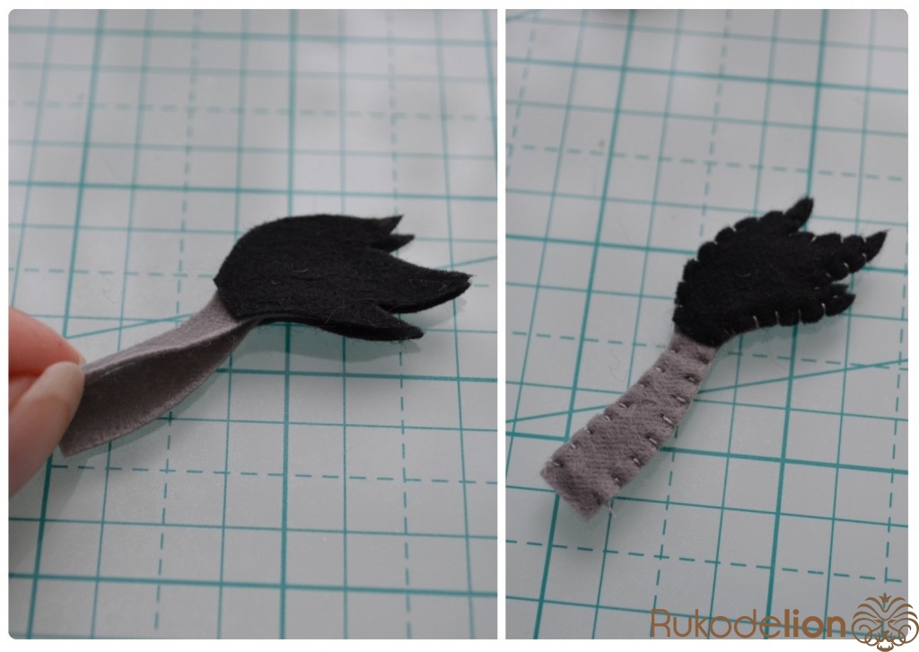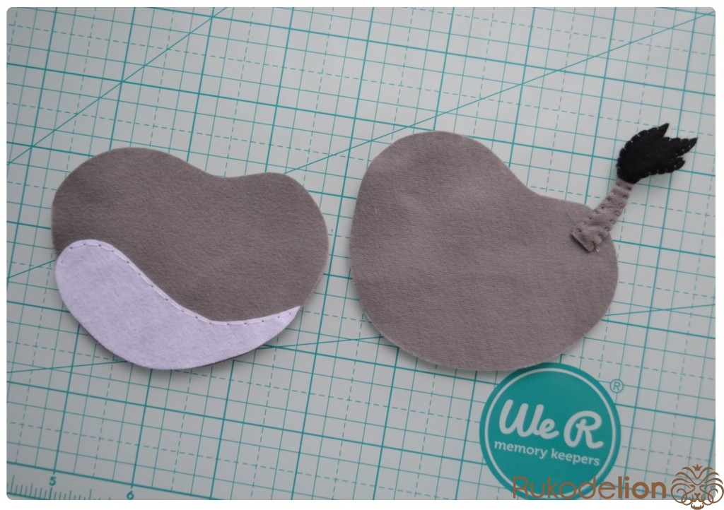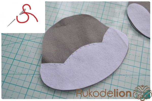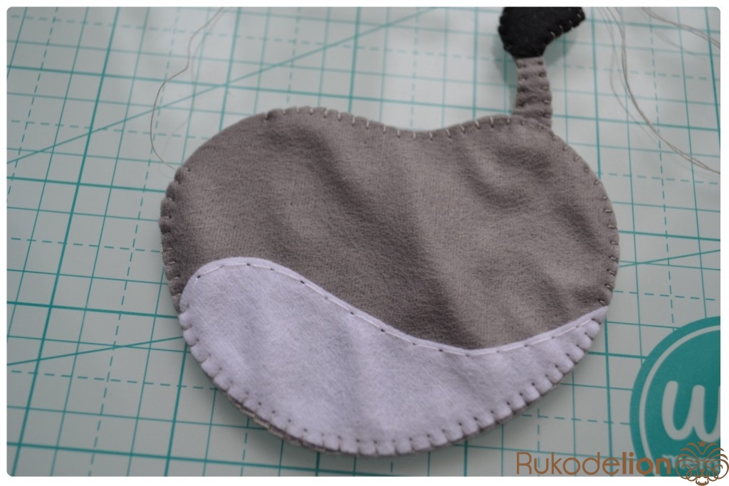 Теперь соединяем эти две детали хвостика и сшиваем их обметочным швом серыми нитками