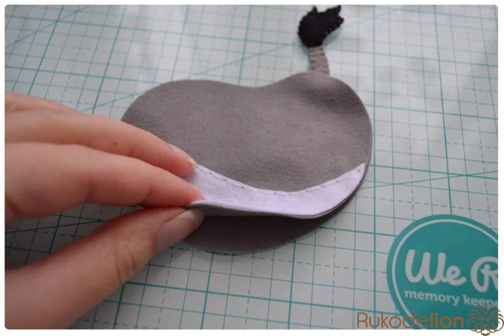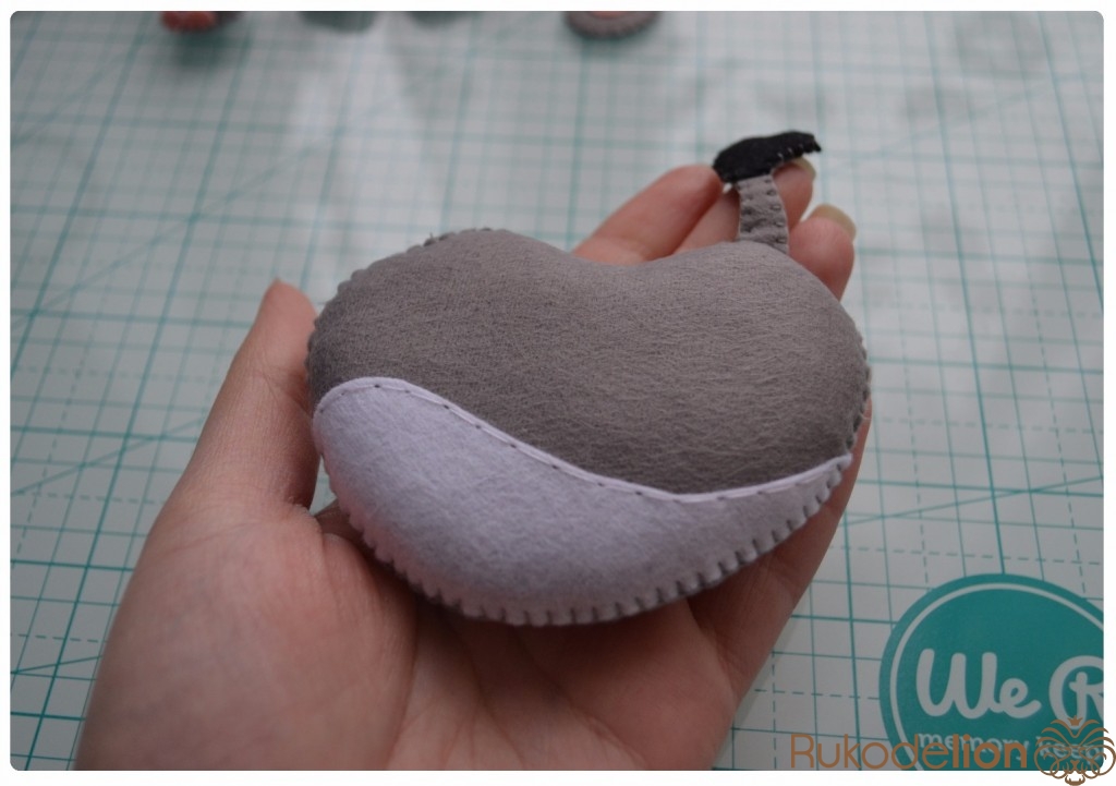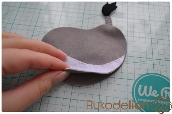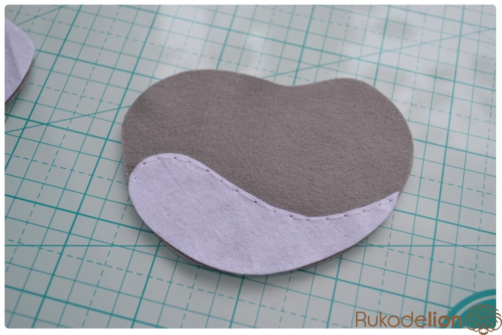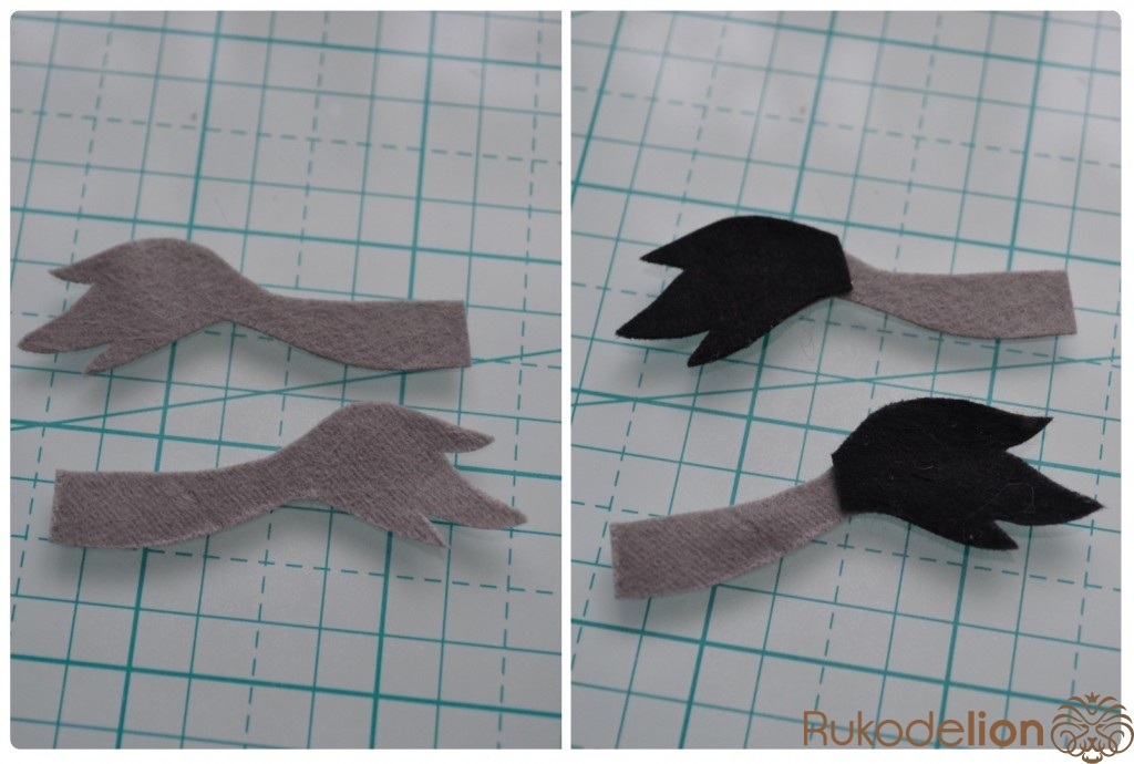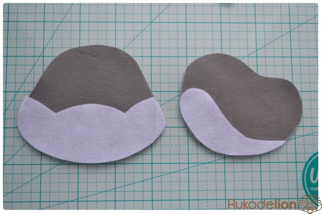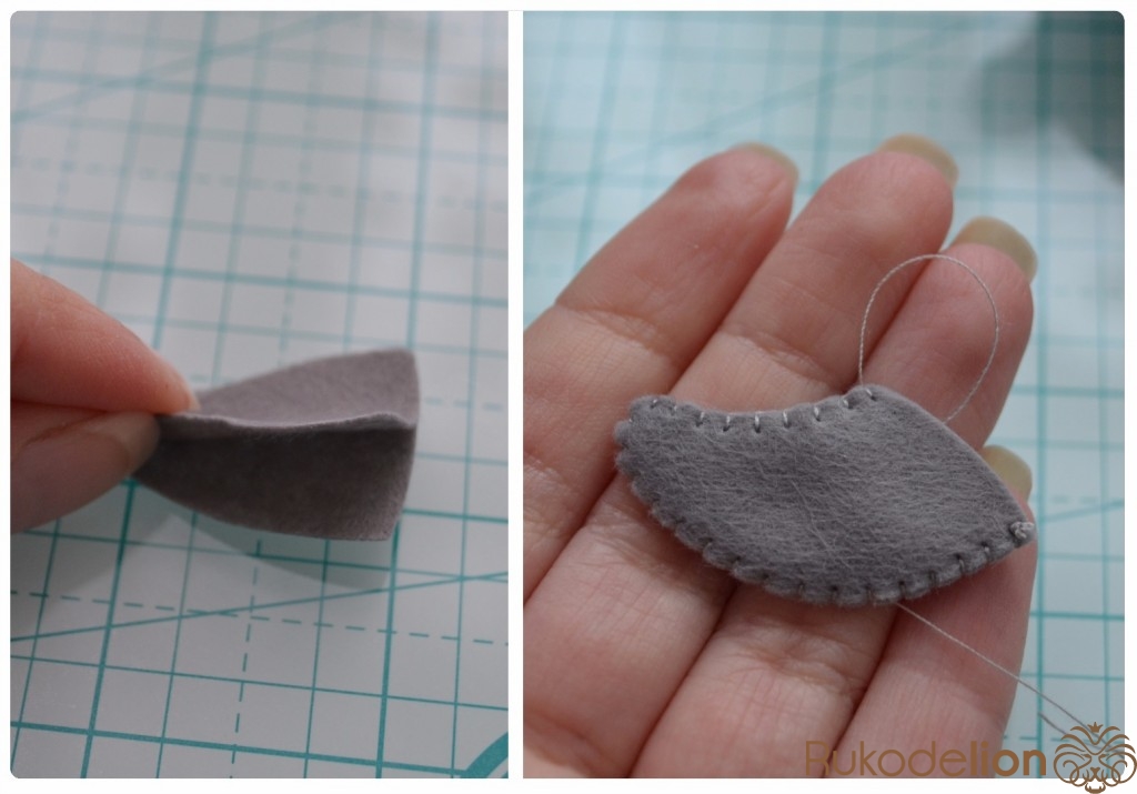 Теперь соединяем эти две детали хвостика и сшиваем их обметочным швом серыми нитками