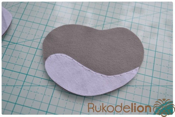 Сшиваем детали головы серыми нитками обметочным швом, но не до конца- оставляем отверстие для набивки.
