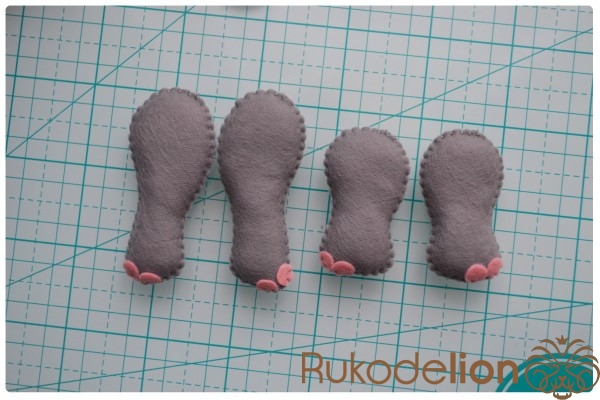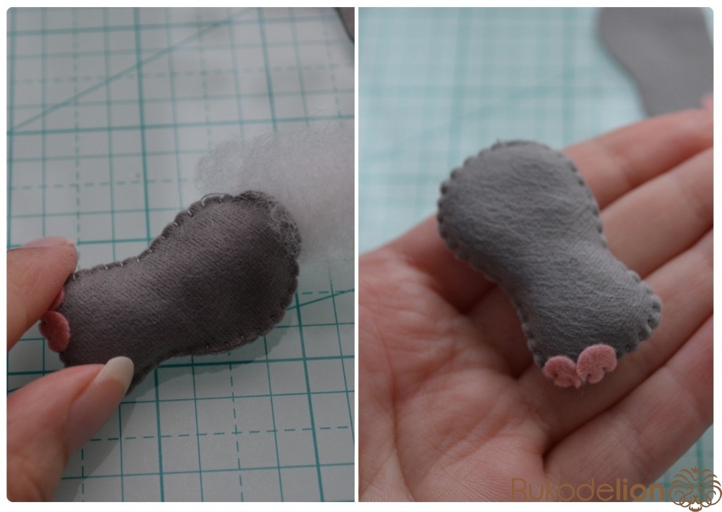 Набиваем лапки синтепоном и заканчиваем обметочный шов