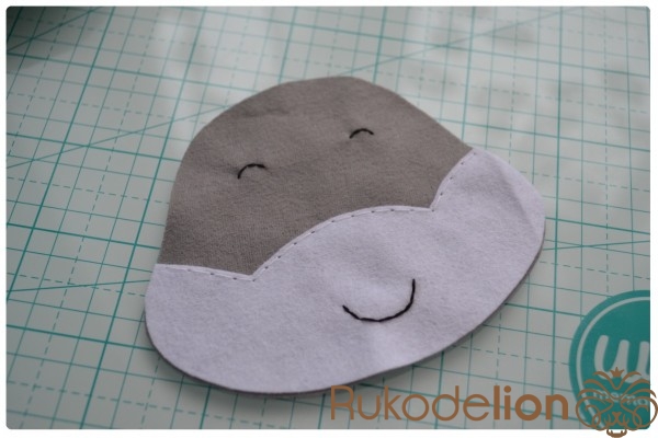Пришиваем мордочку по верхнему краю белыми нитками швом "назад иголка", как это показано на схеме