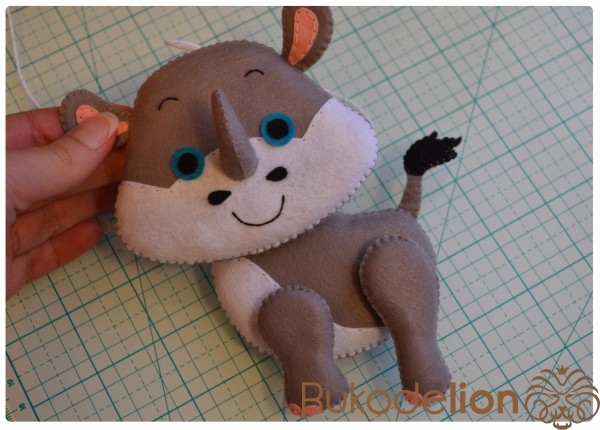 И вот наш  милый носорожка готов! Он станет чудесным героем детского мобиля, гирлянды в кроватку, именного панно,  а также можно сшить такого большого носорога в виде игрушки в кроватку!