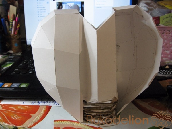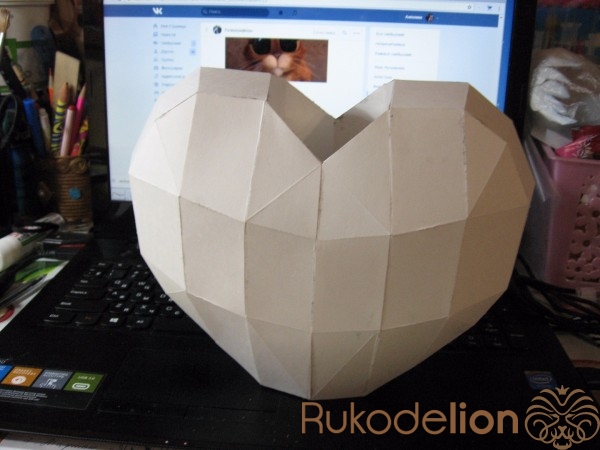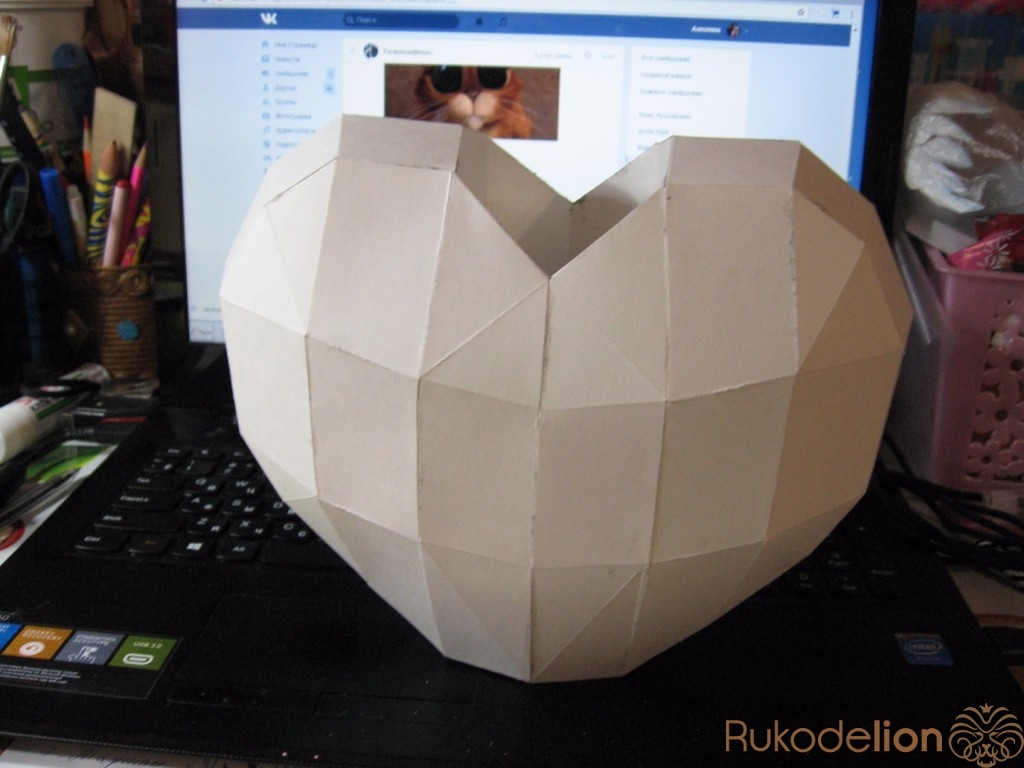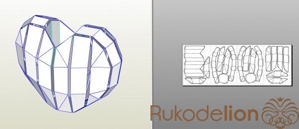 В приближении Дня влюбленных была придумана идея сделать сердце поставку для разных мелочей: ножниц,карандашей, кисточек в технике паперкрафт. На одном из сайтов была найдена 3д модель сердца, которая была взята за основу. Она прошла обработку в программах Блендер и Пепакура.... и вот у меня готова развертка.