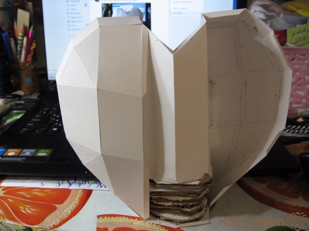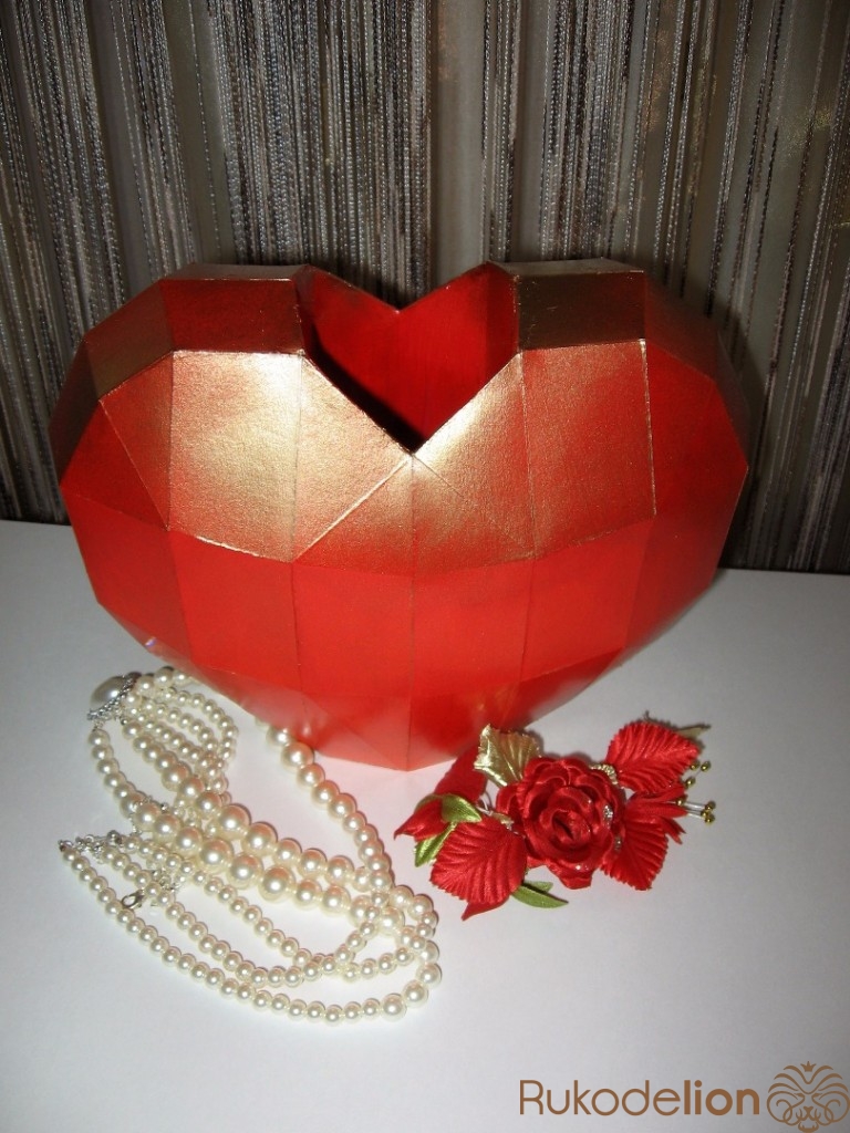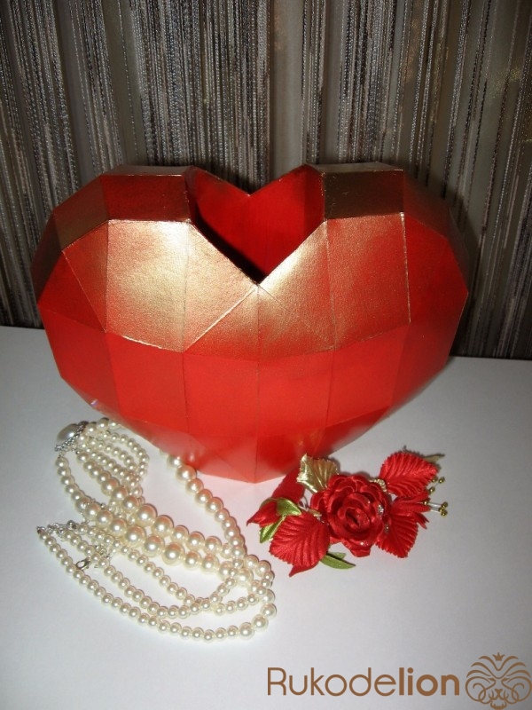 Сердце-подставка выполнено из бумаги в технике паперкрафт. Авторская разработка развертки. Оригинальный подарок на День влюбленных.