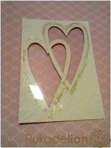 Плотно по контуру сердец наклеиваем объемный скотч + по периметру прямоугольника.