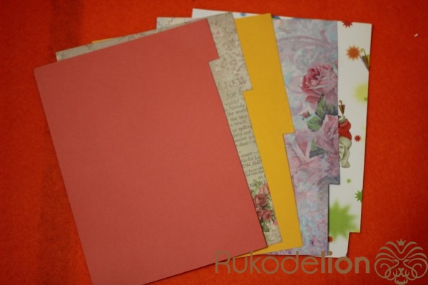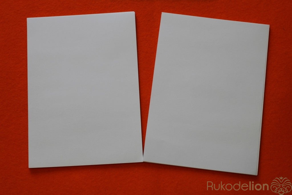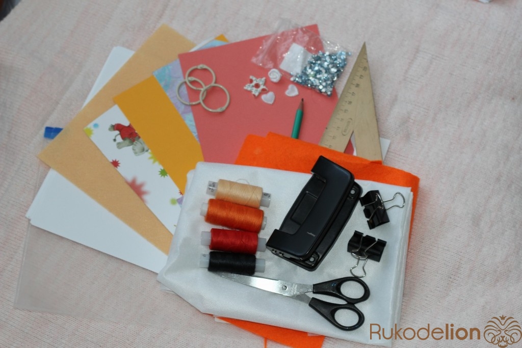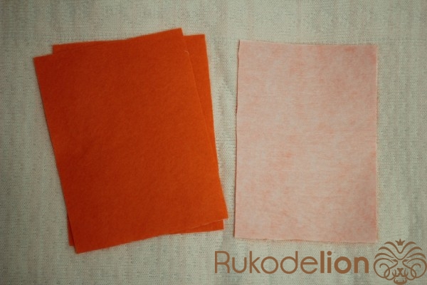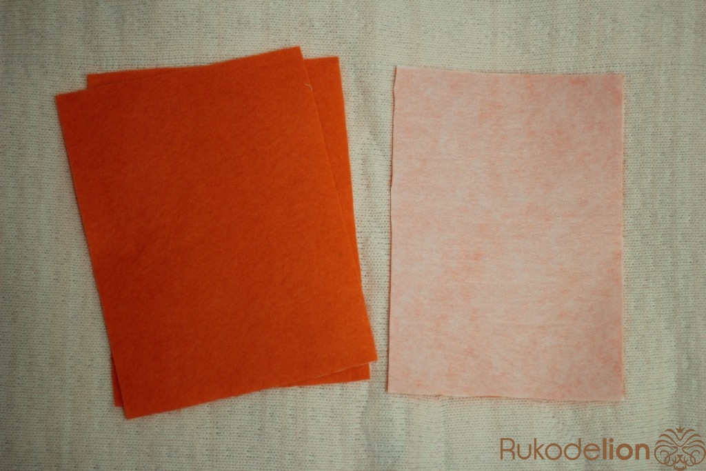 Для обложки нам понадобится фетр. Из фетра вырезаем 4 странички размером 16 см на 21. Укрепляем их дублерином. Из папки вырезаем 2 странички 15 см на 20 см.