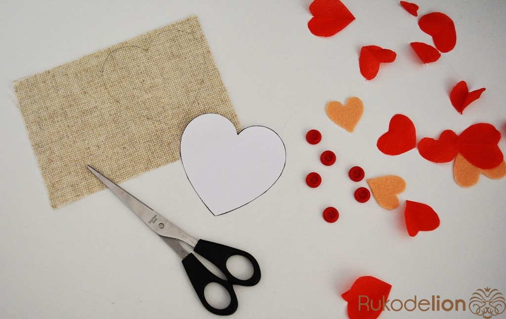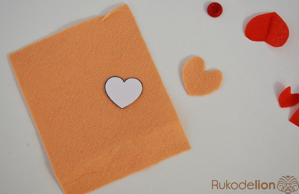 Снова берем трафарет сердечко, только маленького размера и вырезаем несколько сердечек.