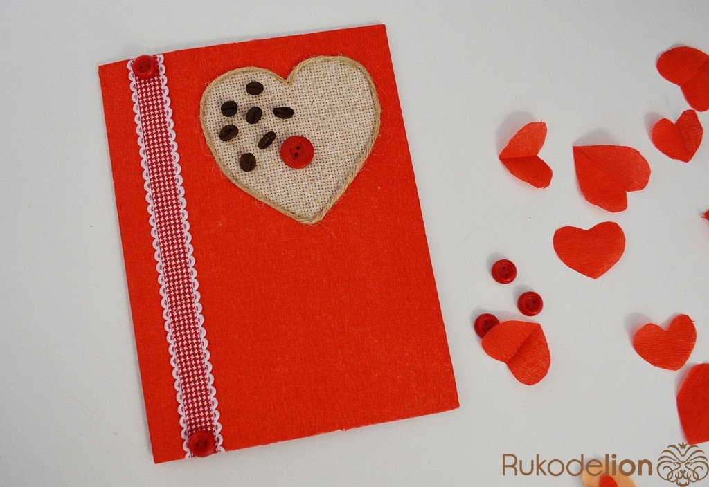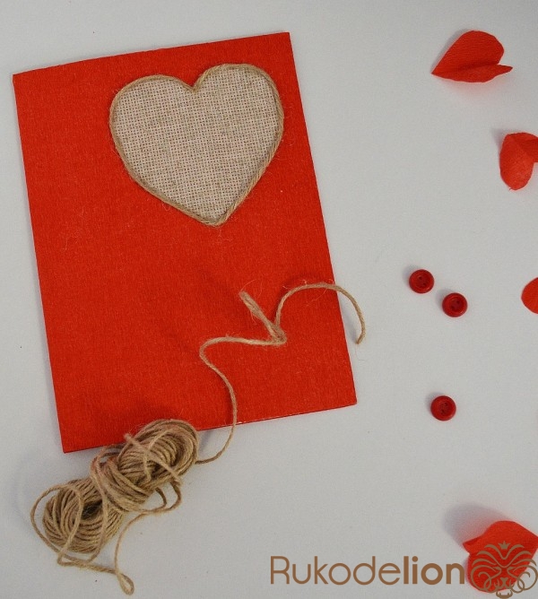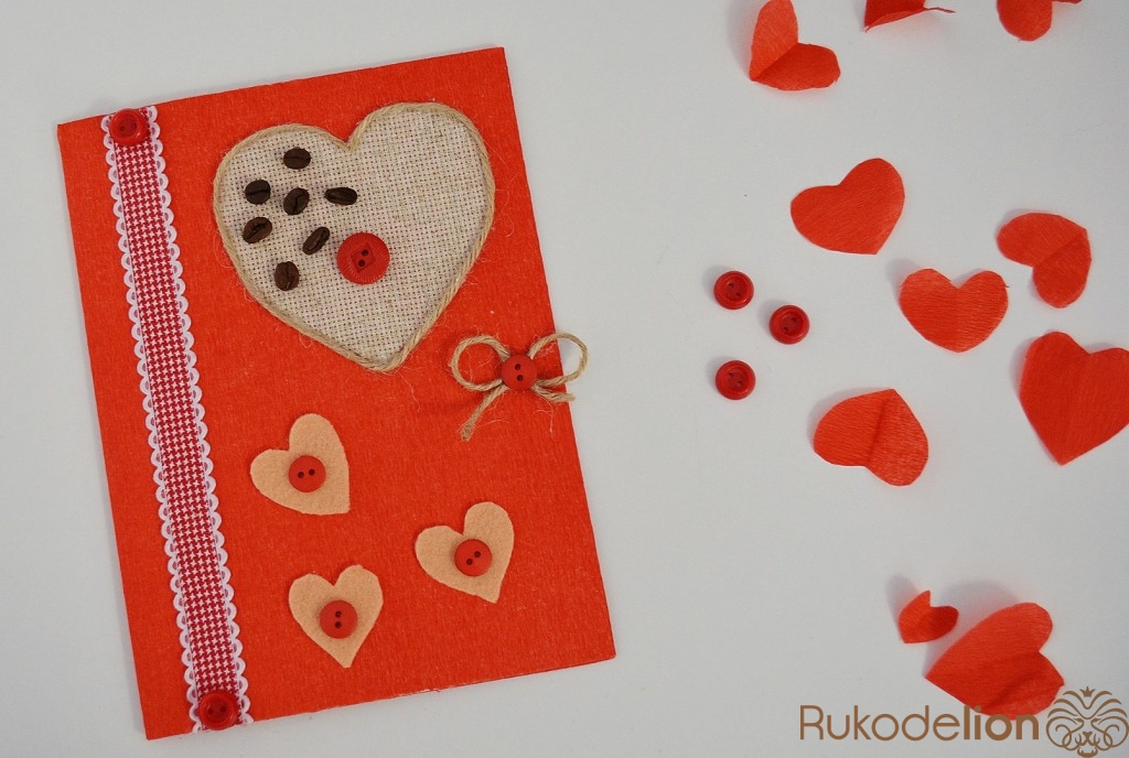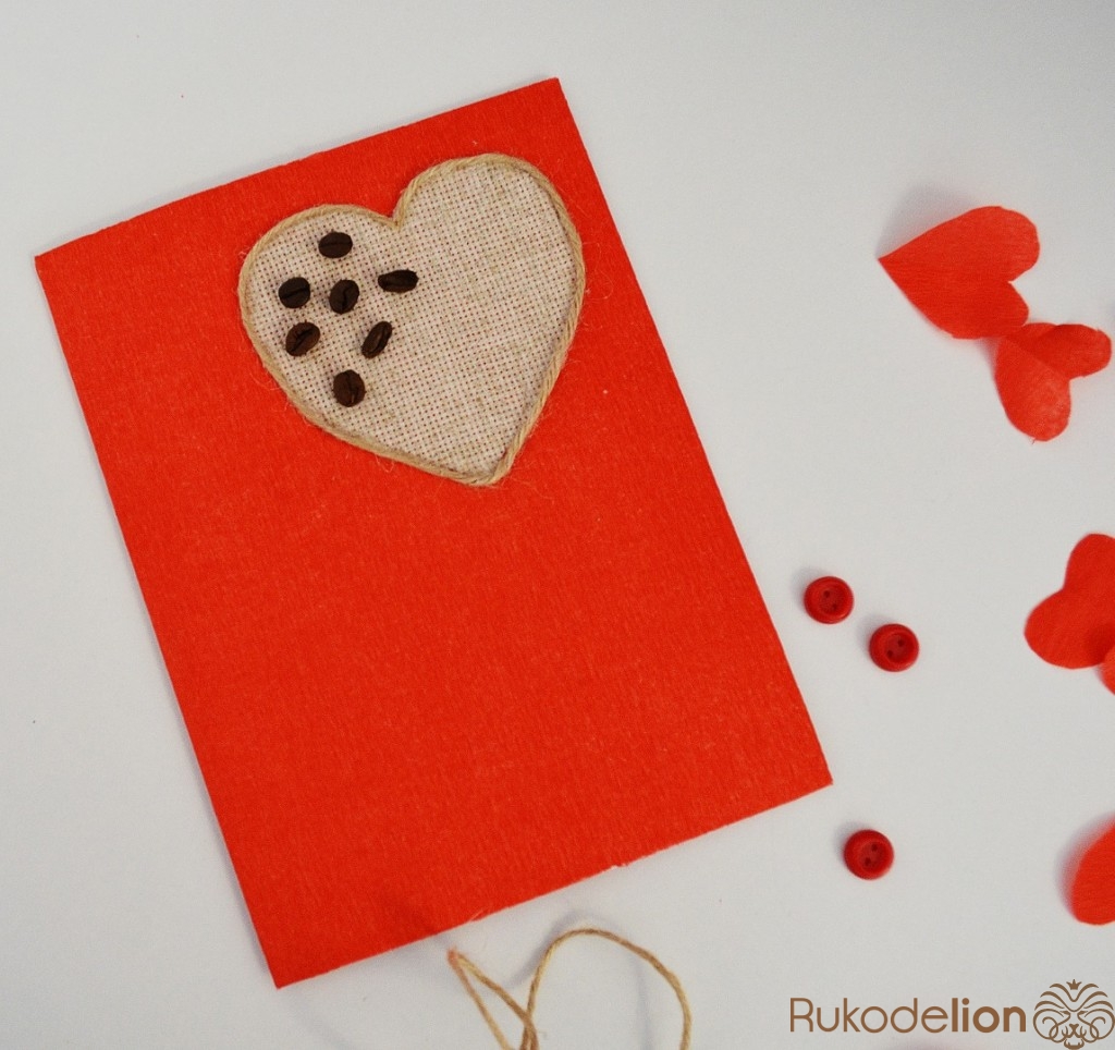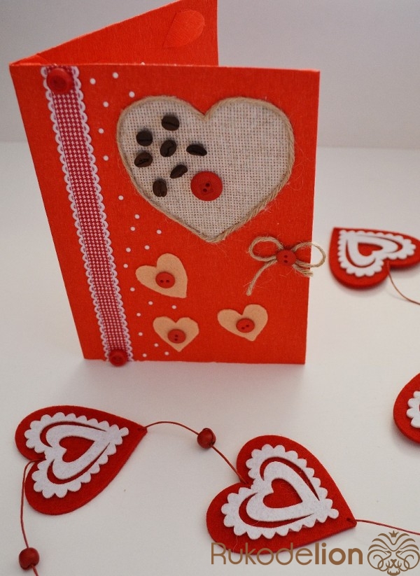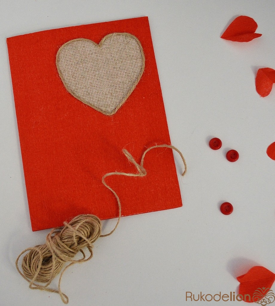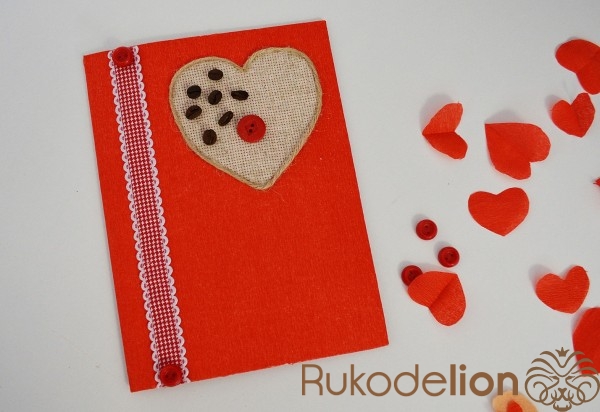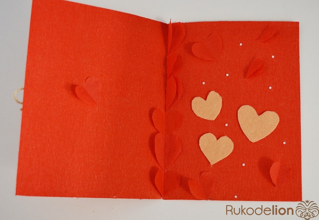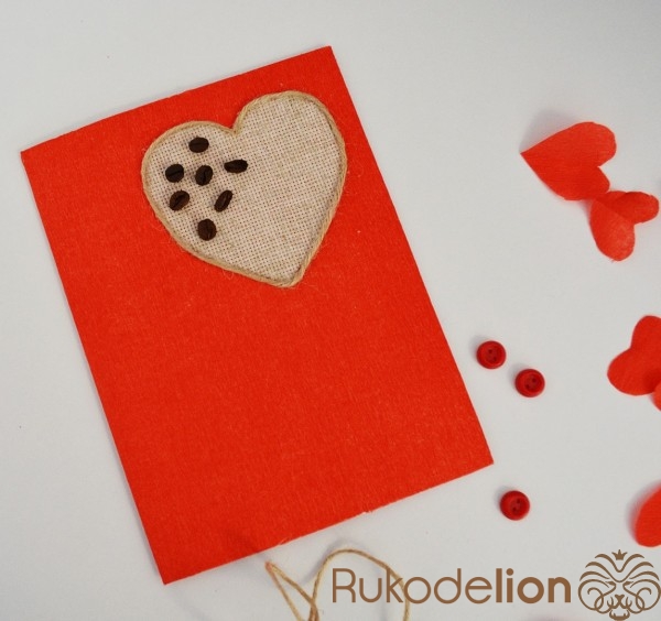 Приклеиваем на пустую часть открытки, чтобы они не смотрелись "голыми", приклеиваем в серединку сердца пуговичку.