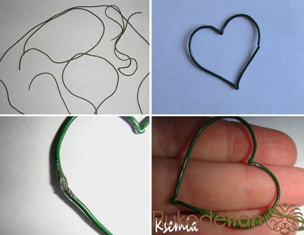 Отрезаем проволоку примерно 12 см (длина проволоки зависит от желаемого размера кулон сгибаем ее в форе сердца. Можно воспользоваться узкогубцами, это значительно упростит работу. «Шов» (его лучше оставлять сбоку сердца) заклеиваем супер-клеем или любым другим подходящим для металла.