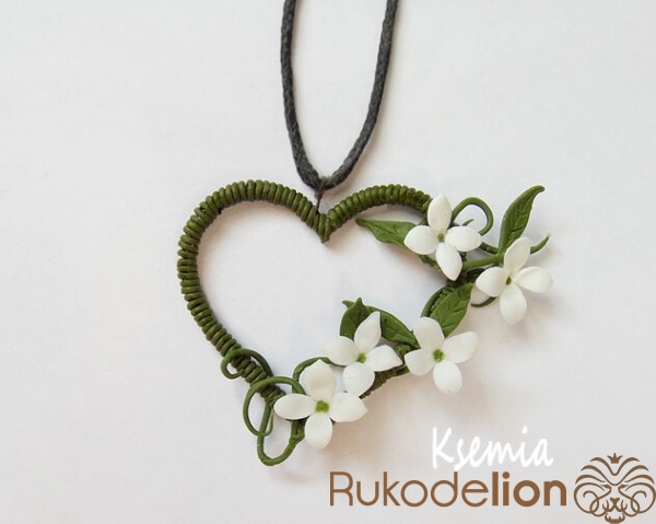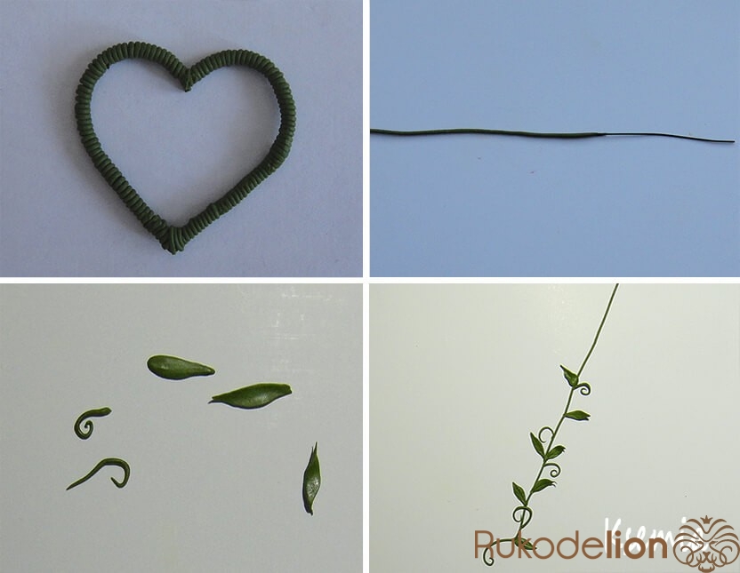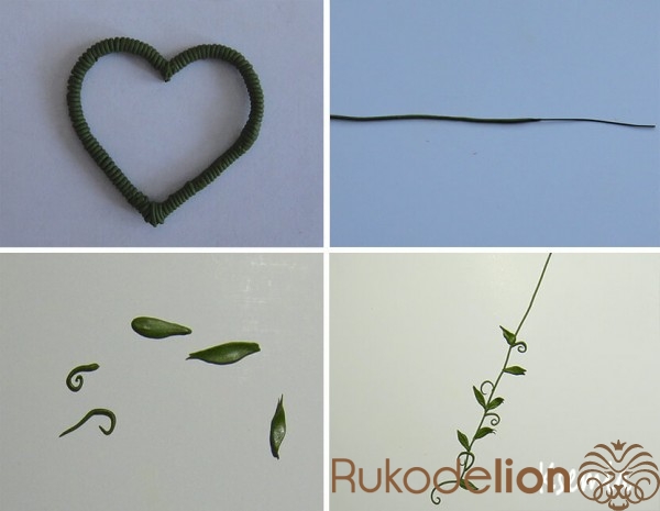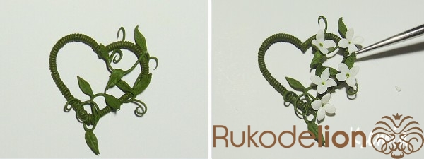 Завиваем одну сторону сердца стеблем с листиками, стараемся придать стеблю округлые формы.