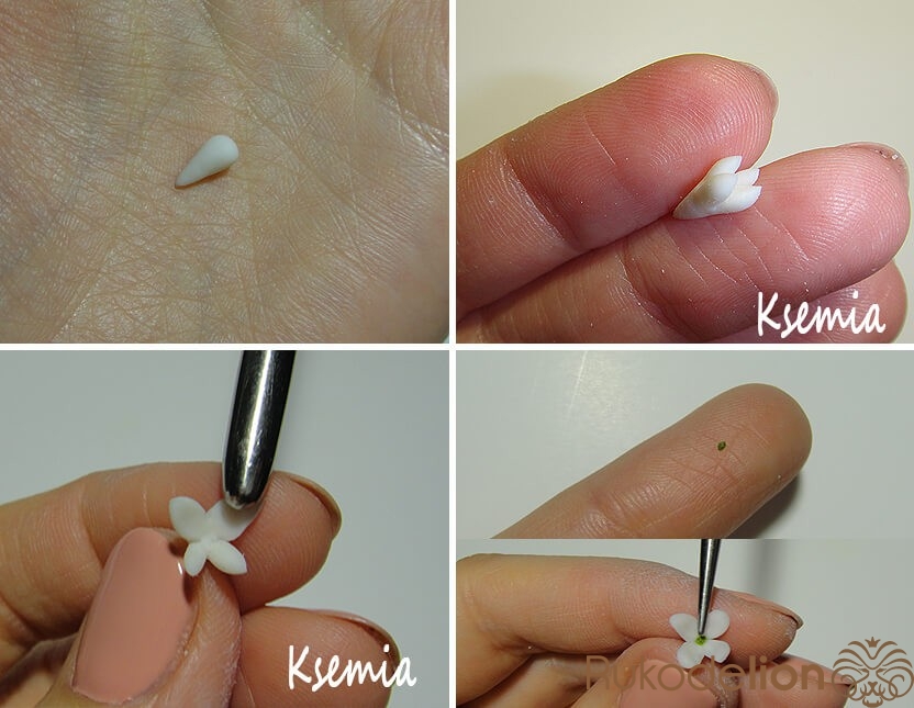 Формируем маленькую капельку, разрезаем ее толстую сторону на 4-е части.