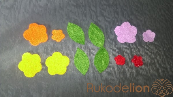 1. Бежый, синий, зеленый, салатовый, красный, оранжевый, сиреневый, желтый фетр