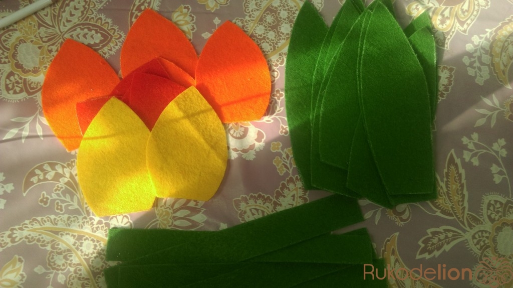1. Жёлтый, оранжевый, красный, зелёный фетр.