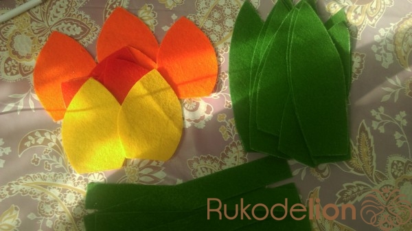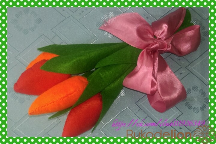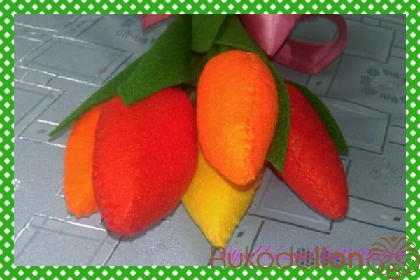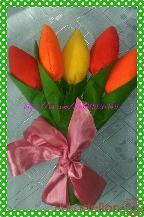 Тюльпаны выполнены из фетра. Сшиты полностью вручную.